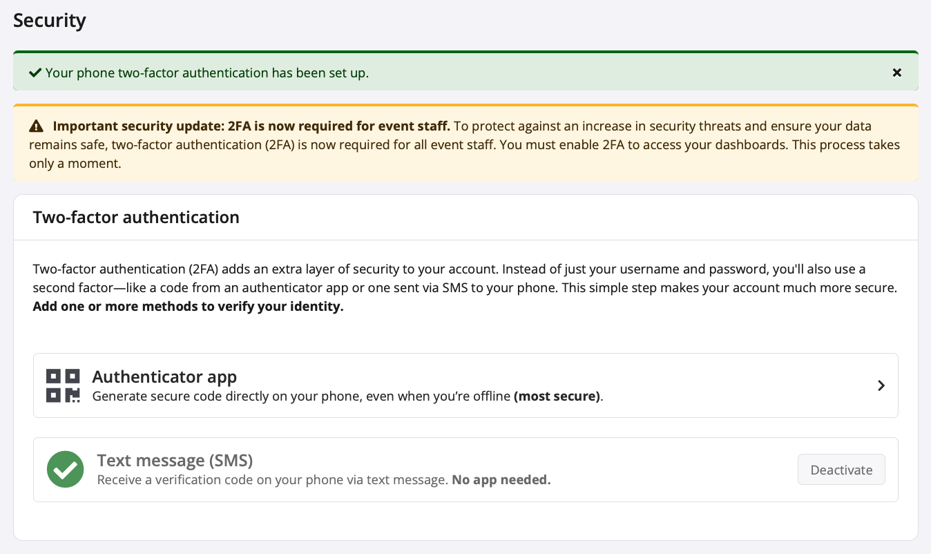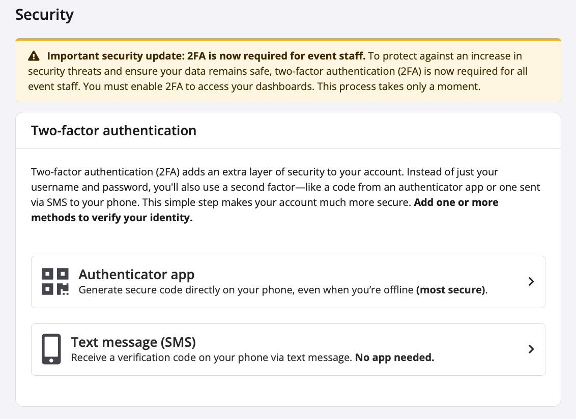 Enabling Two-Factor Authentication (2FA) - Participants and Fundraisers