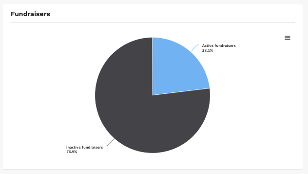 7. The Fundraisers section will provide metrics on the amount of your fundraisers that are active (actively fundraising) vs those that are inactive
