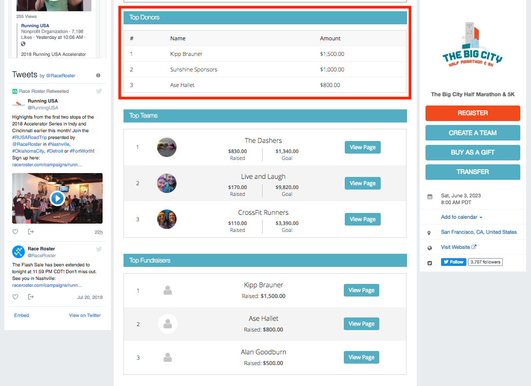 7. Toggle top donors widget and enter the number of results to display on the event page