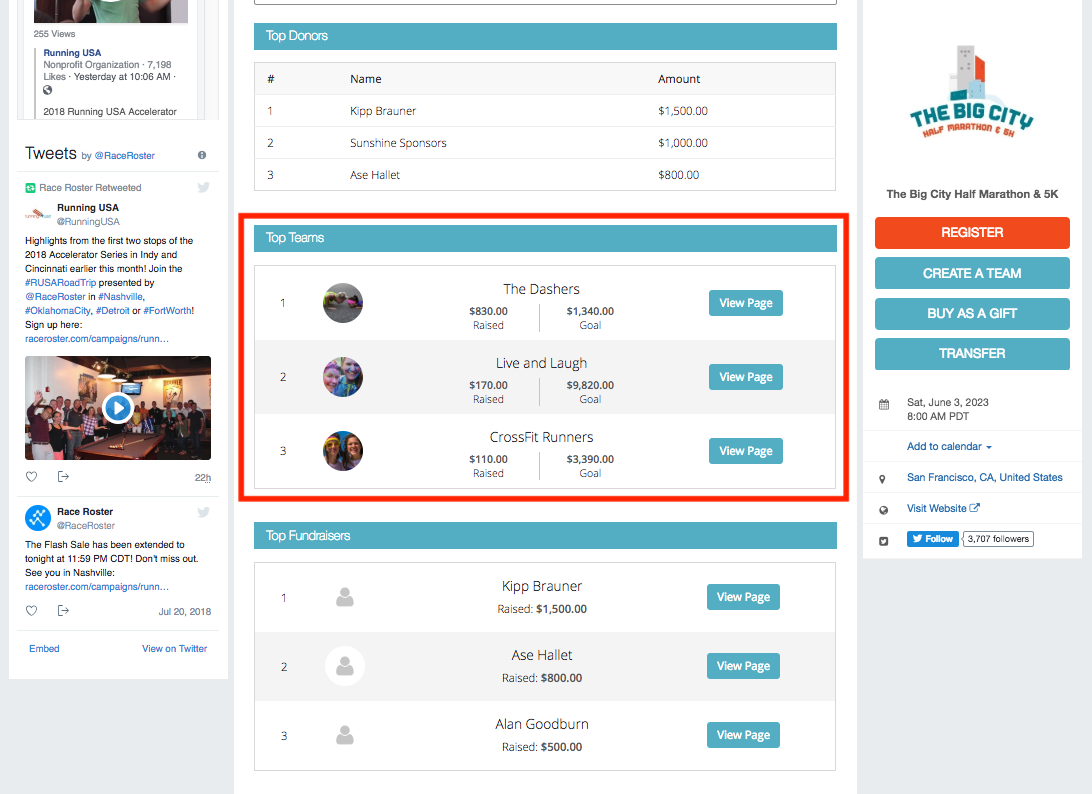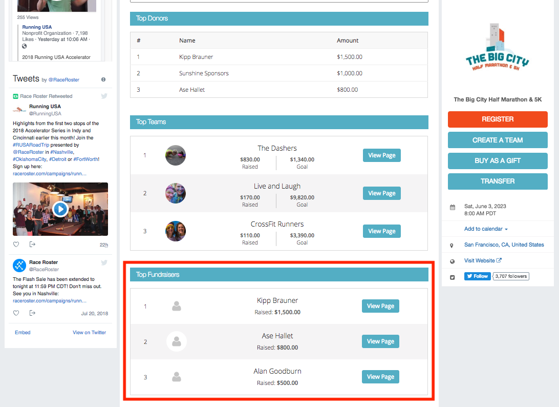 8. Toggle top fundraisers widget and enter the number of results to display on the event page