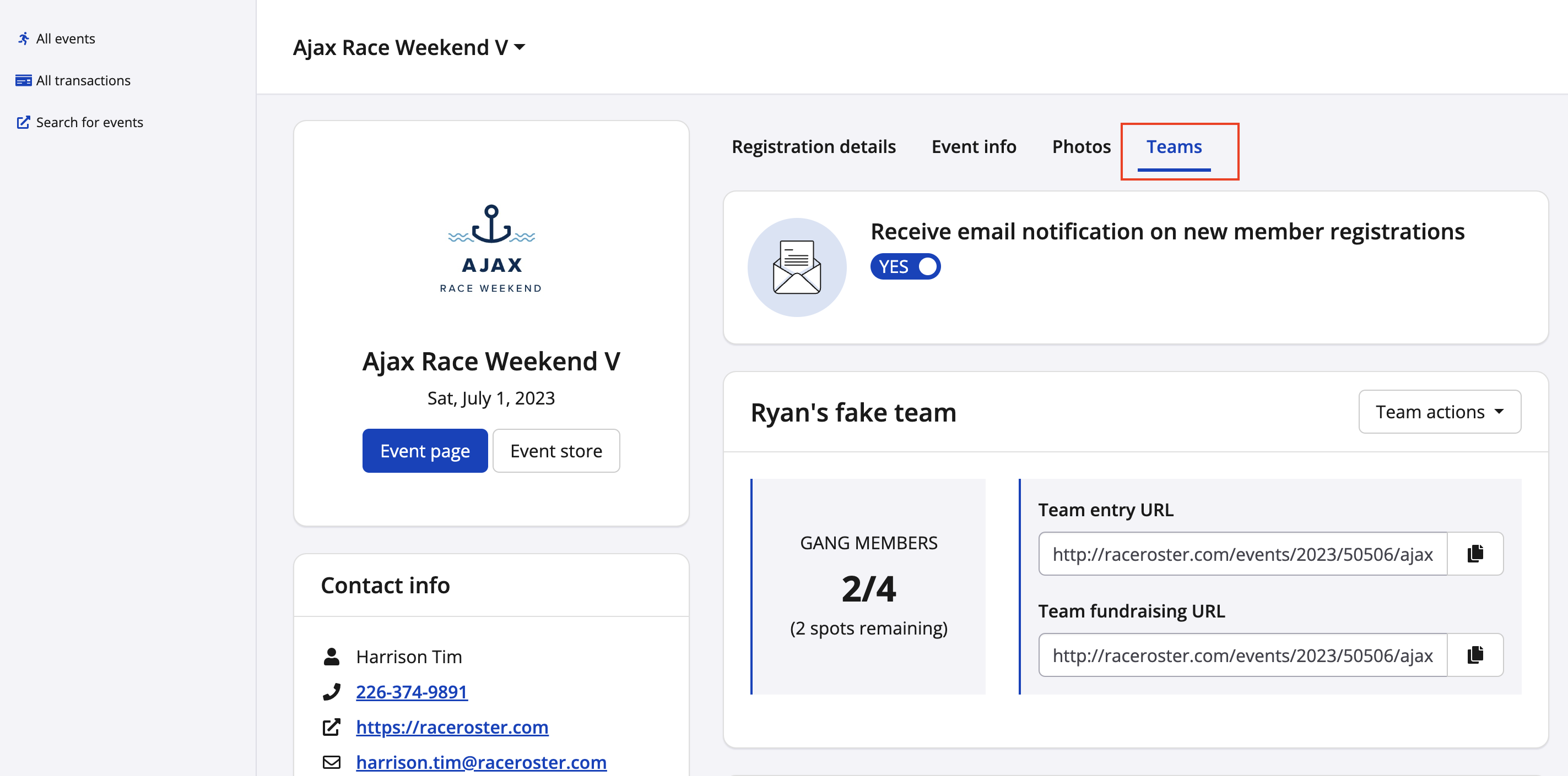 6. On the teams page, as a team captain you will be able to: