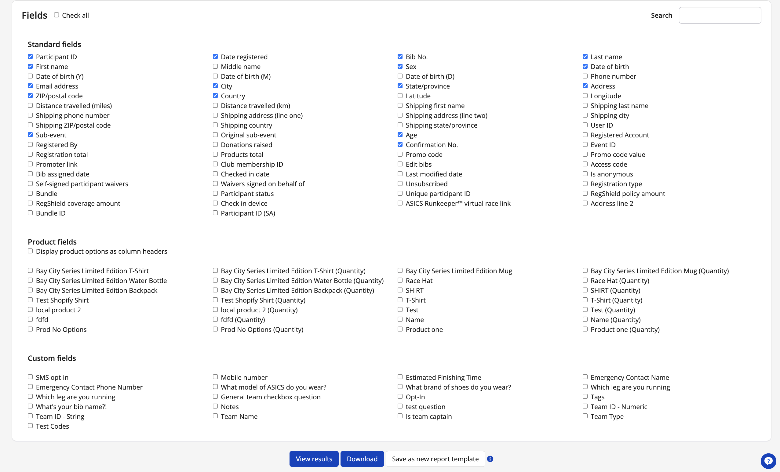 4. Scroll down and select the fields you would like to include in the report (i.e. first name, last name, email, swag item, etc.)