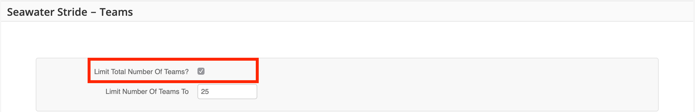 - Check the box at the top of the page that says 'Limit Total Number of Teams'