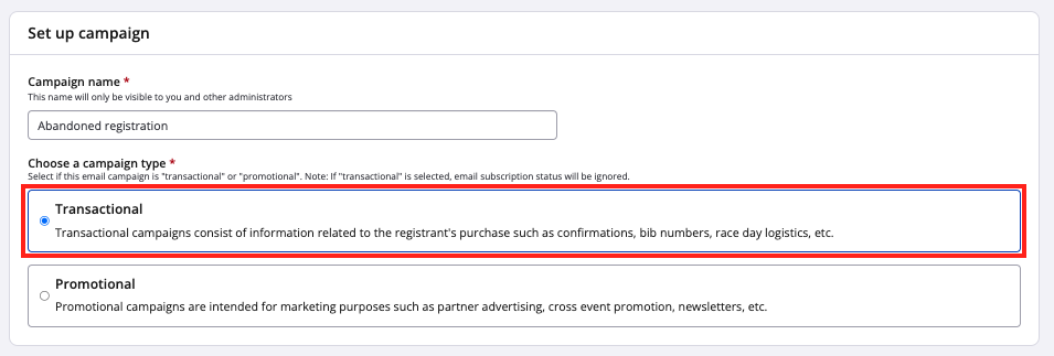 choose the campaign type "Transactional"