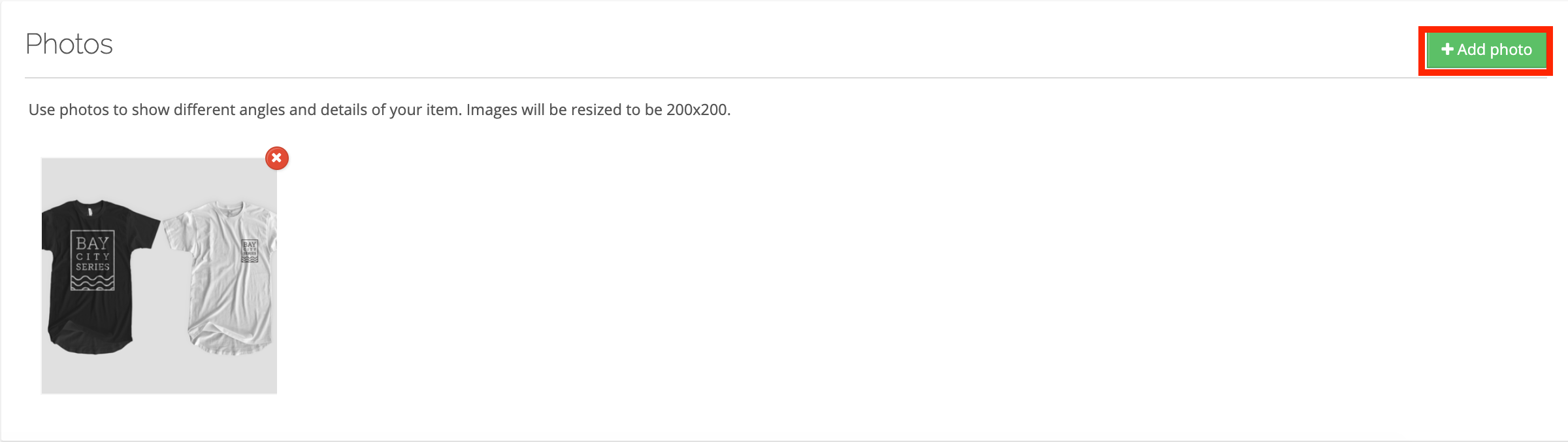 - Scroll down to the Photos section of the product and click +Add Photo