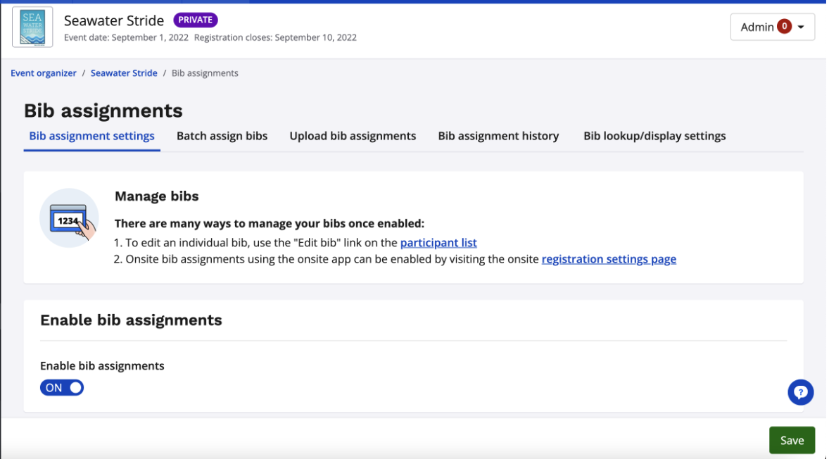2. Select the event you are assigning bibs for from the drop down at the top of your page