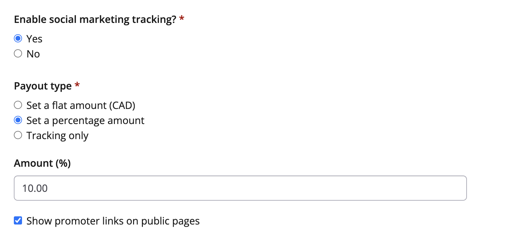 If an event wants to track referrals but does not want to offer a monetary payment to their promoters, there is a tracking only option available within the referral settings. This option allows event organizers to keep track of the number of successful referrals from their promoters, but does not issue any automated payment from Race Roster. Using the tracking only option provides event organizers with the flexibility to reward their promoters through any form of compensation of their choice. Read our article How To Set Up The Tracking Only Option For The Social Referral Tool for more information on this option.