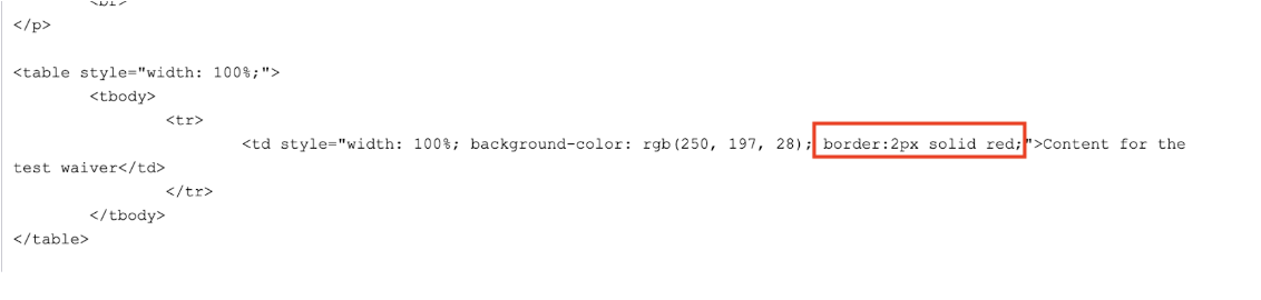 4. Click save once complete. Your waiver will now display both the colored background, as well as the red border.