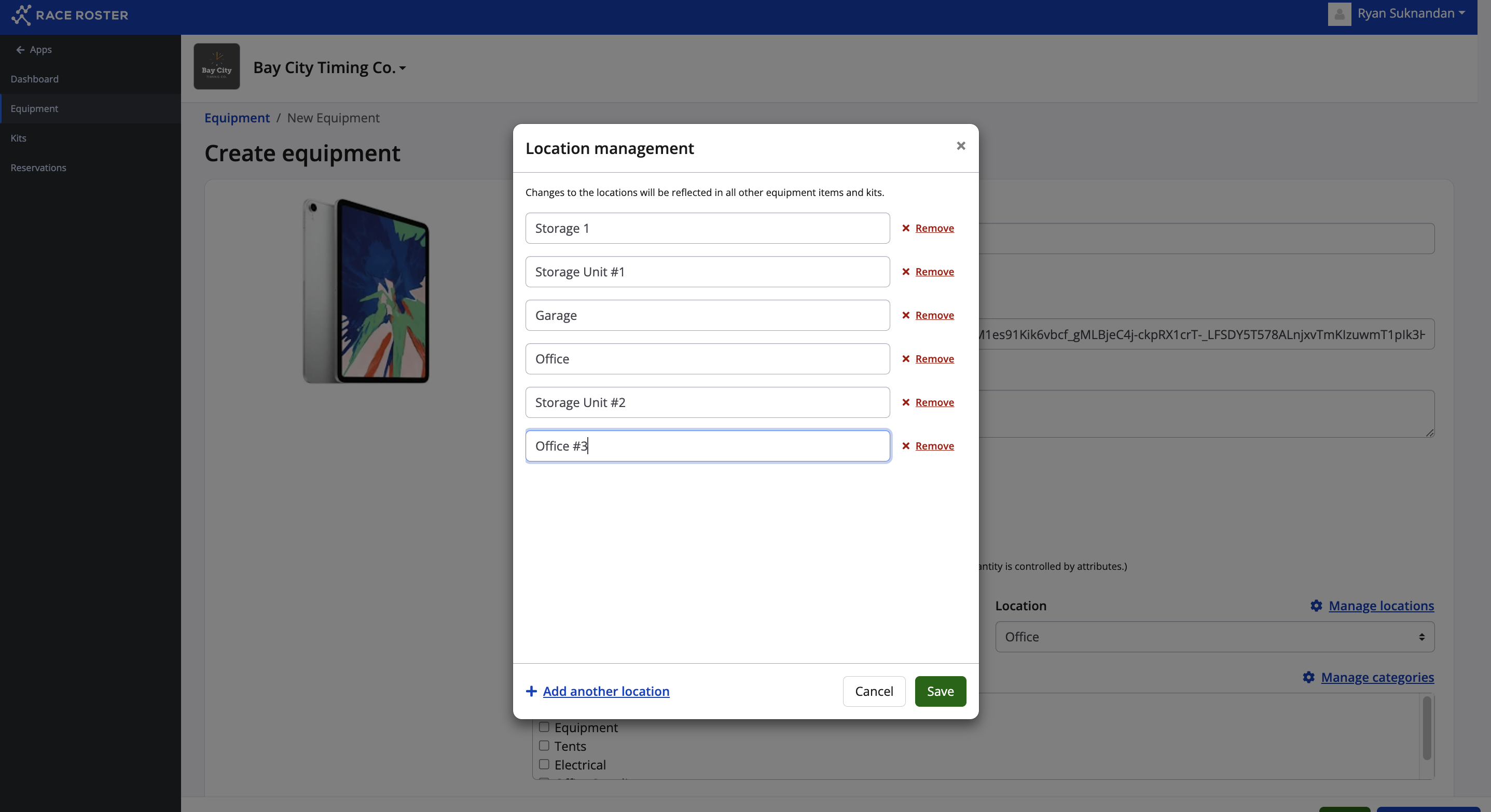 7. Each will take you to their respective modal where you can create locations and categories by clicking + Add another location and + Add another category.