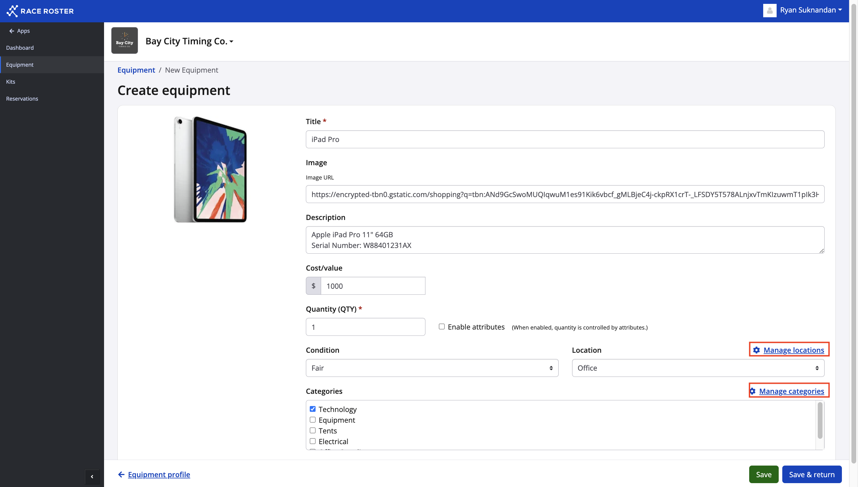 How to add Equipment to your Inventory