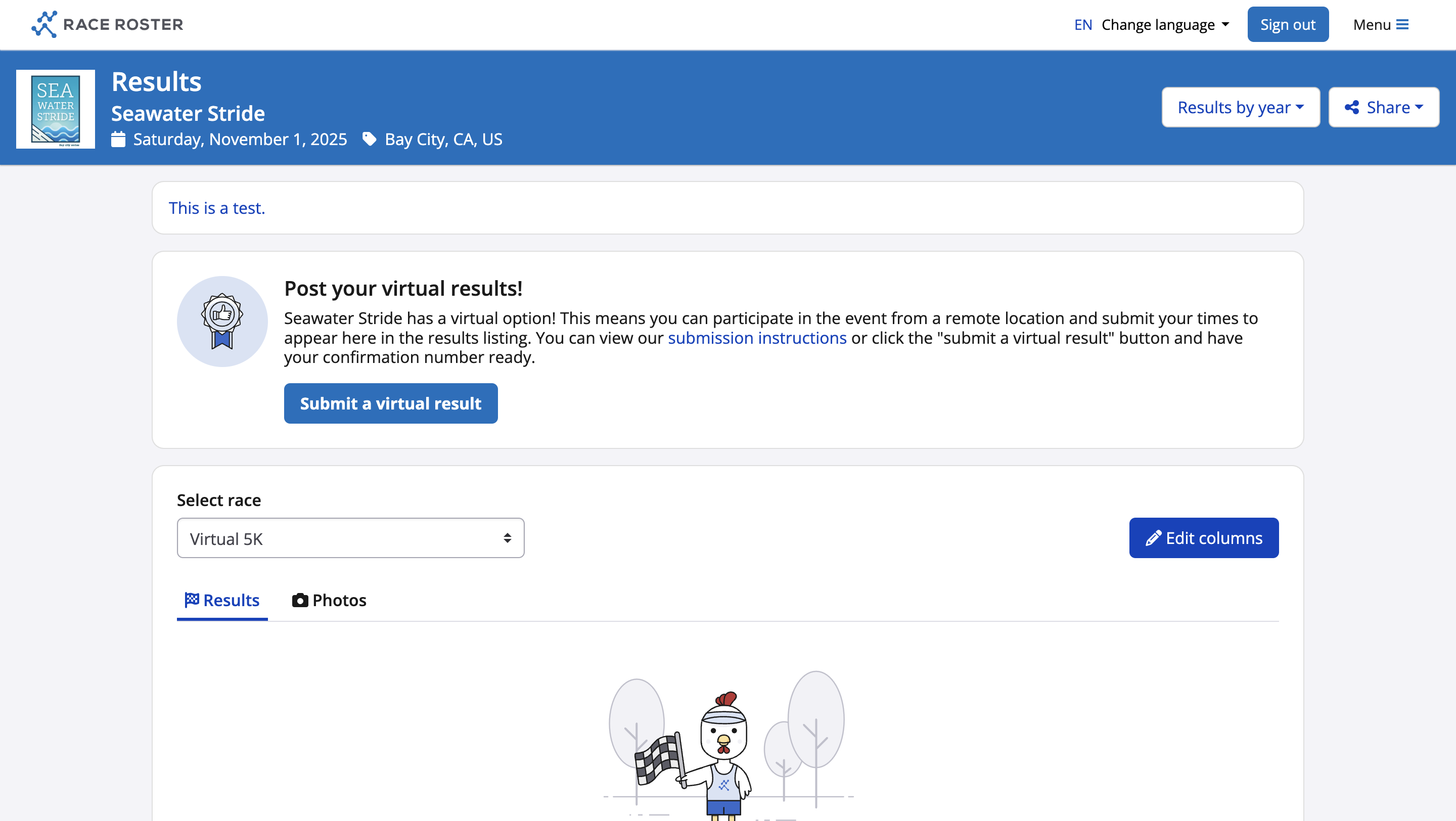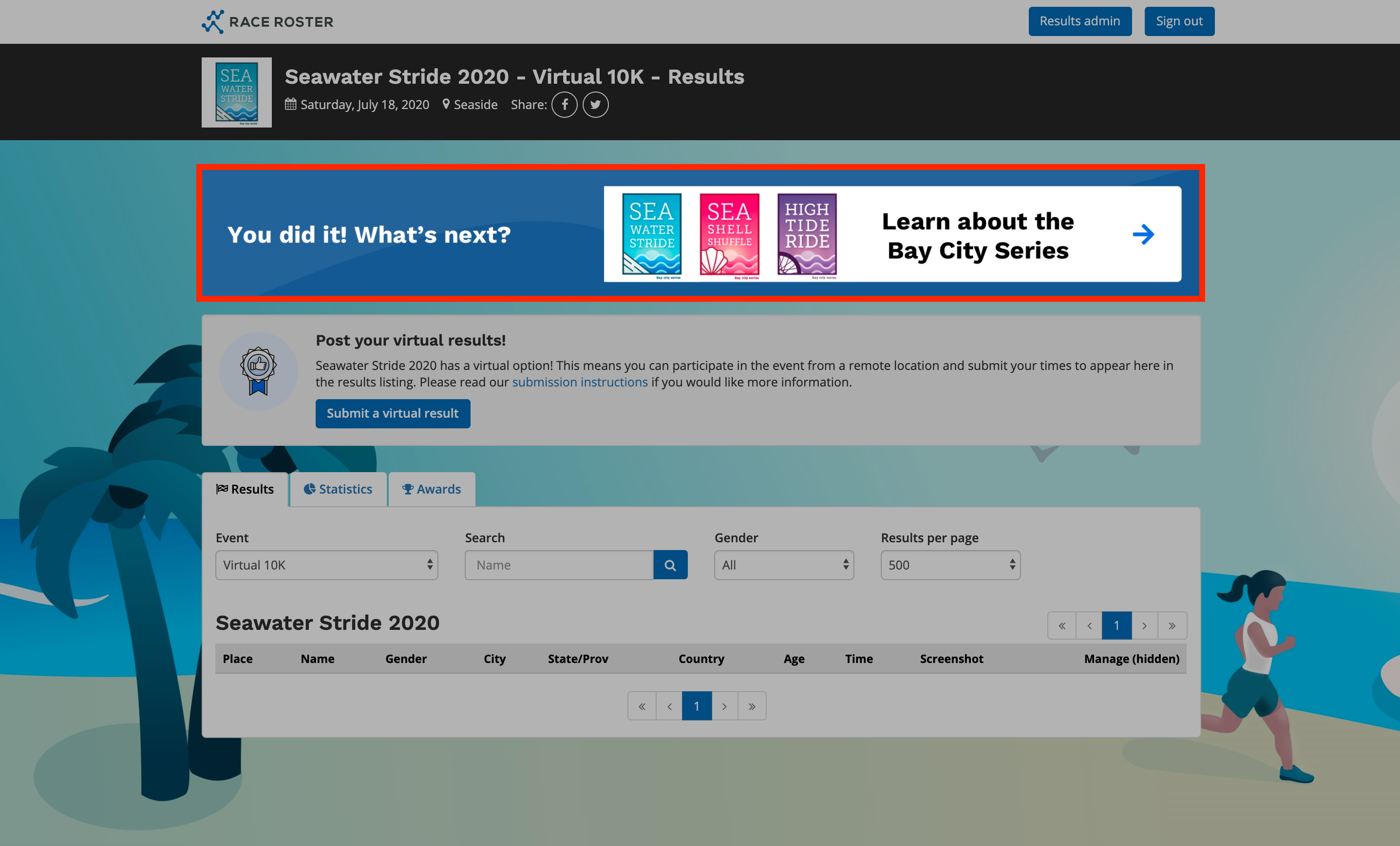 Results page with Race Roster's default theme