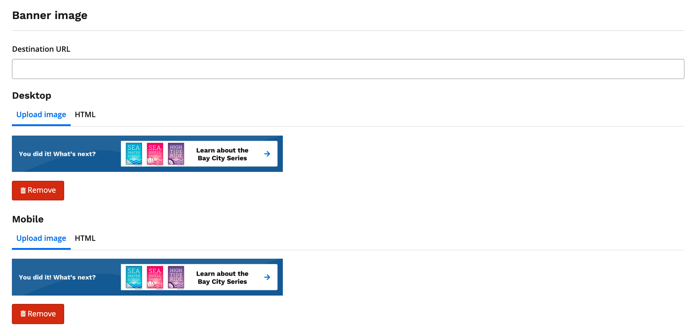 You may also add images that will appear on the mobile version of the results page. Moreover, you can add destination URL. A Destination URL is simply the address of your webpage people reach when they click one of your image.