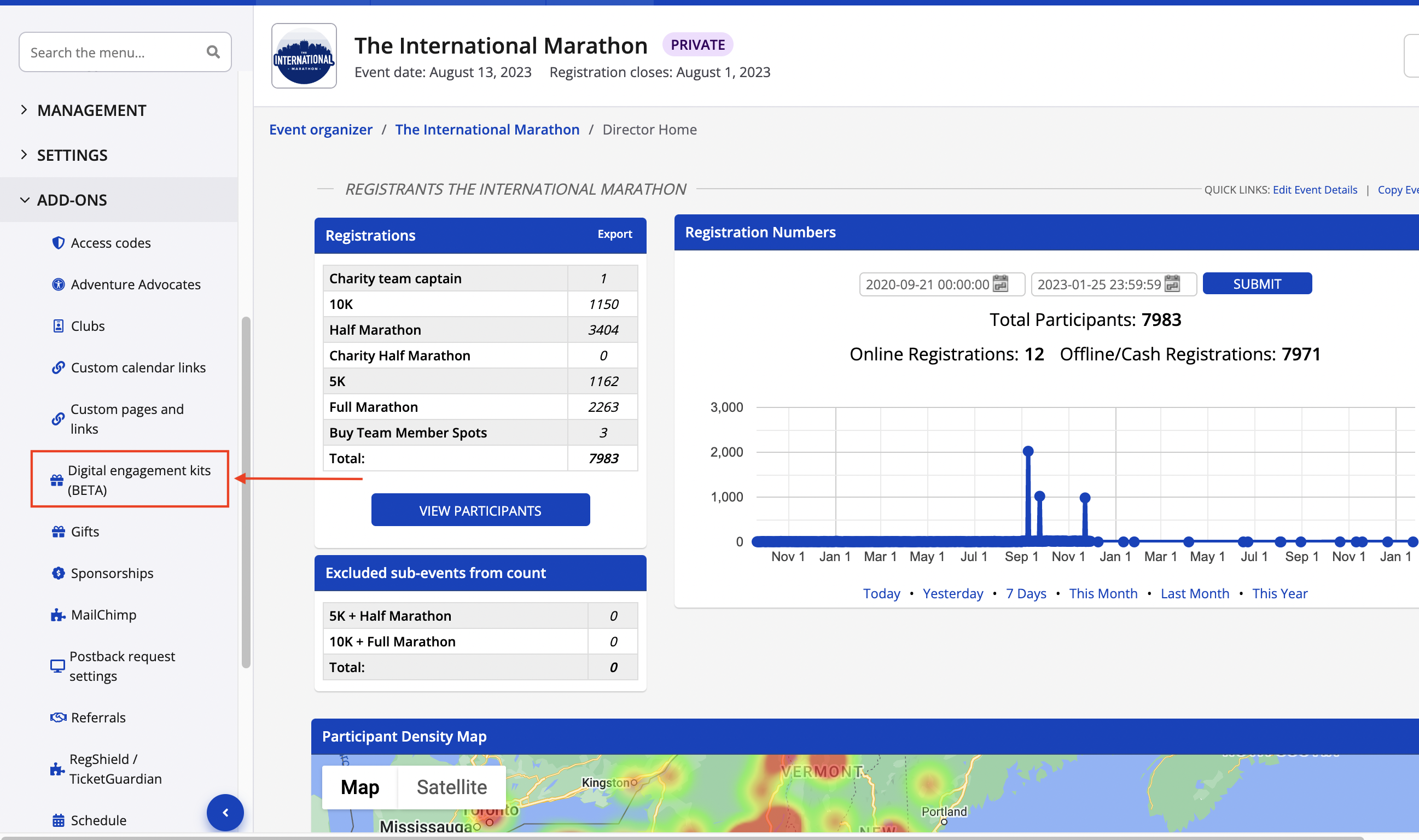 1. From your event dashboard, find your digital engagement kit settings under the add-ons tab from the lefthand side menu.