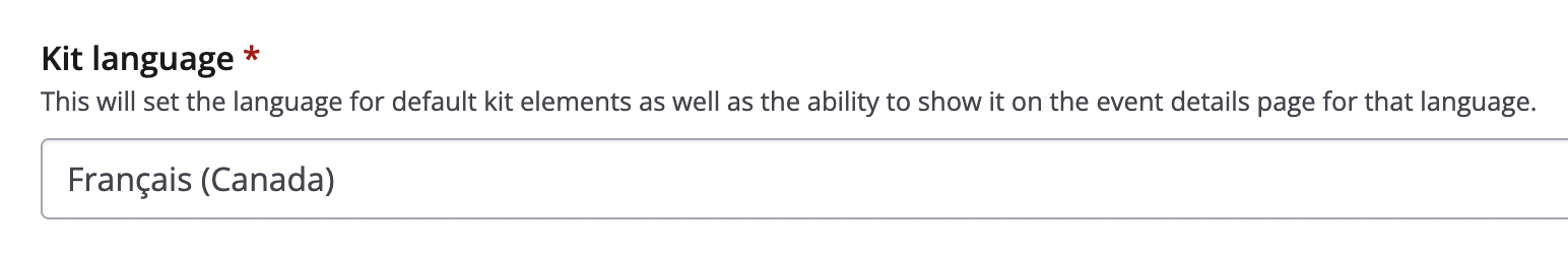 NOTE: The custom content within your kit will still only display in the language you inserted translated copy for, but the surrounding areas of your event page will be translated any other included languages. If you wish to have the copy within a kit display in a third language, you will need to recreate/duplicate your kit again and insert custom copy in the third language.