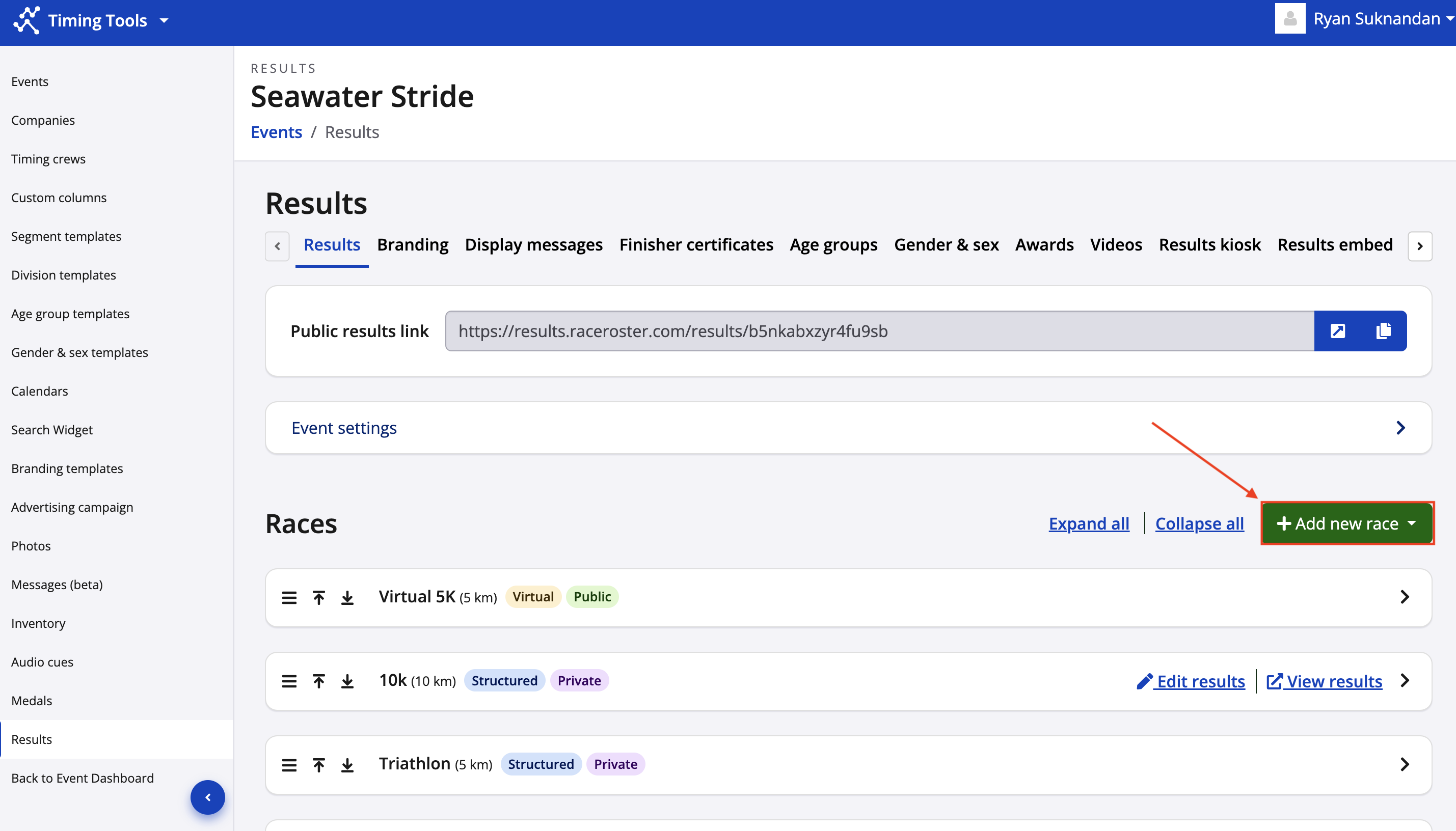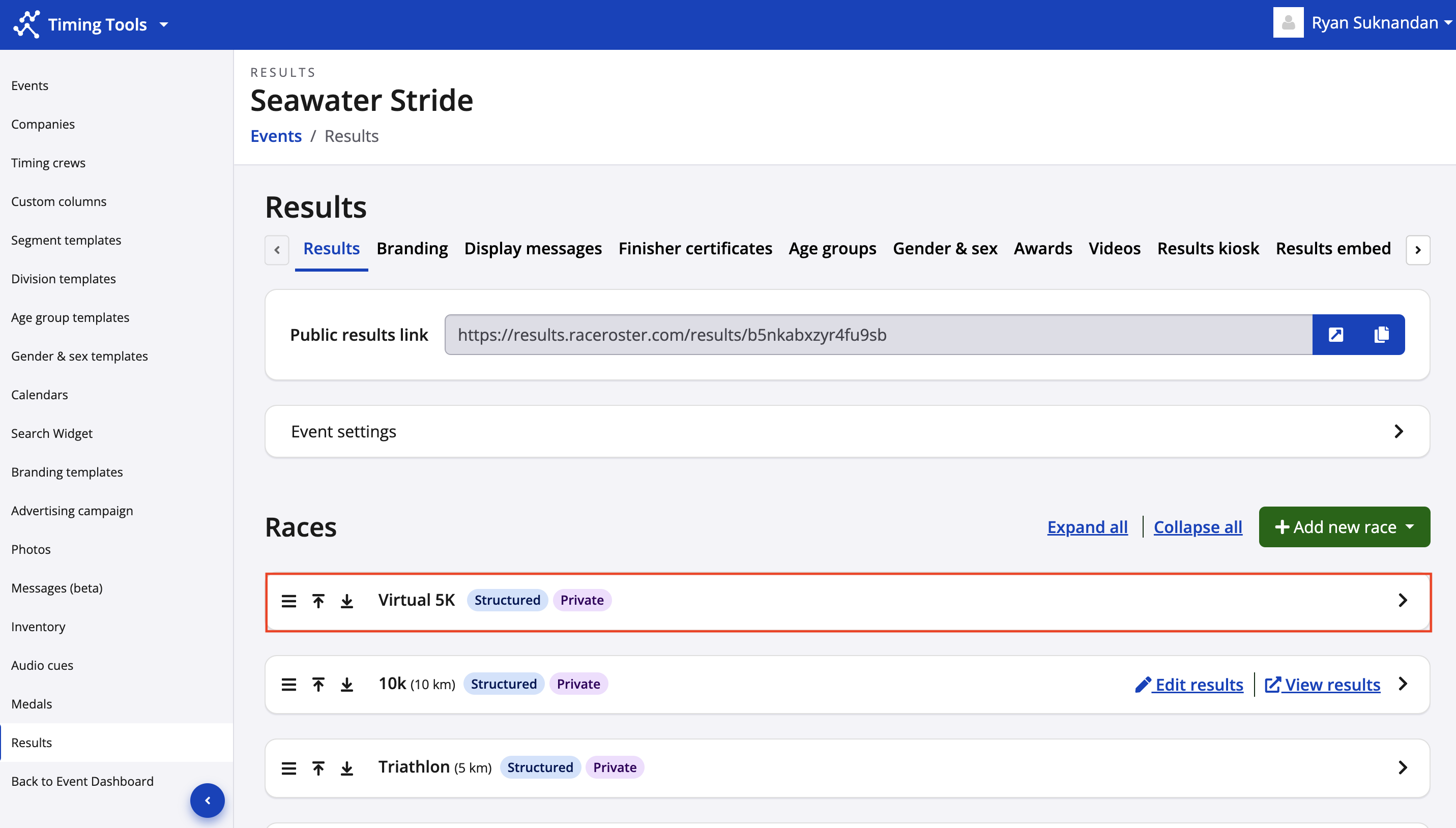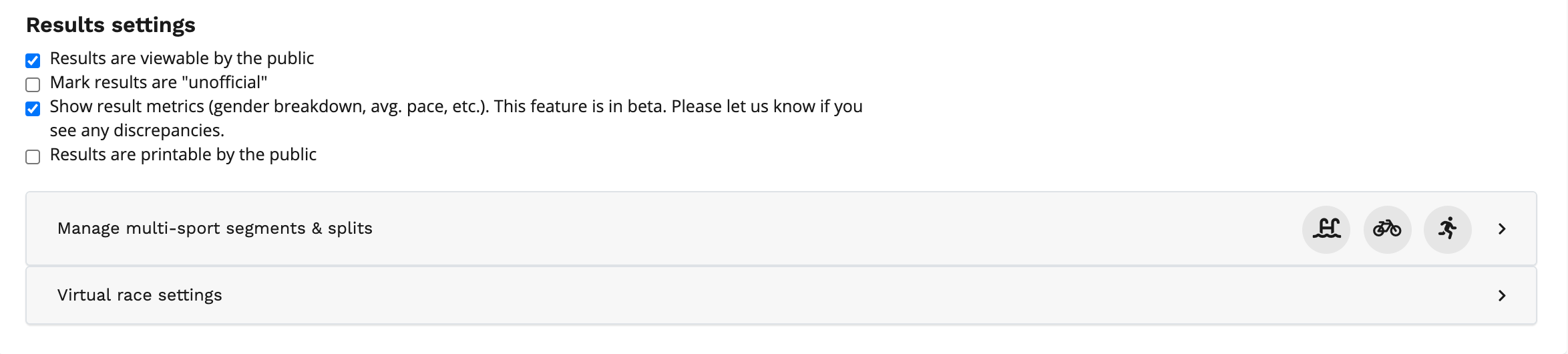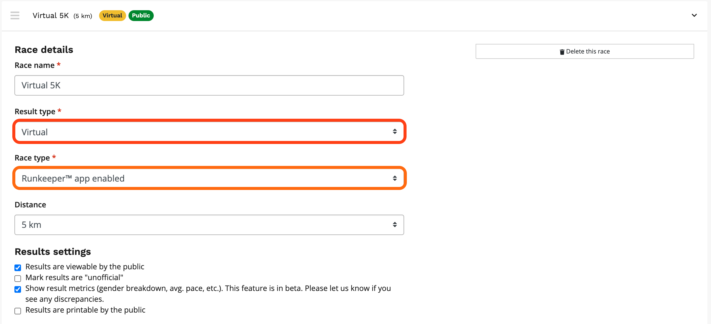 4. After you have switched your race to virtual or created a new race, be sure to mark that your results are viewable by the public