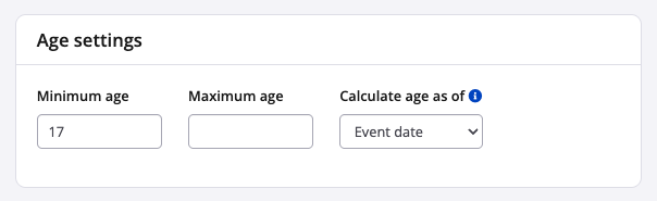 5. In the age settings section, you may establish minimum and/or maximum ages for the sub-event when needed.