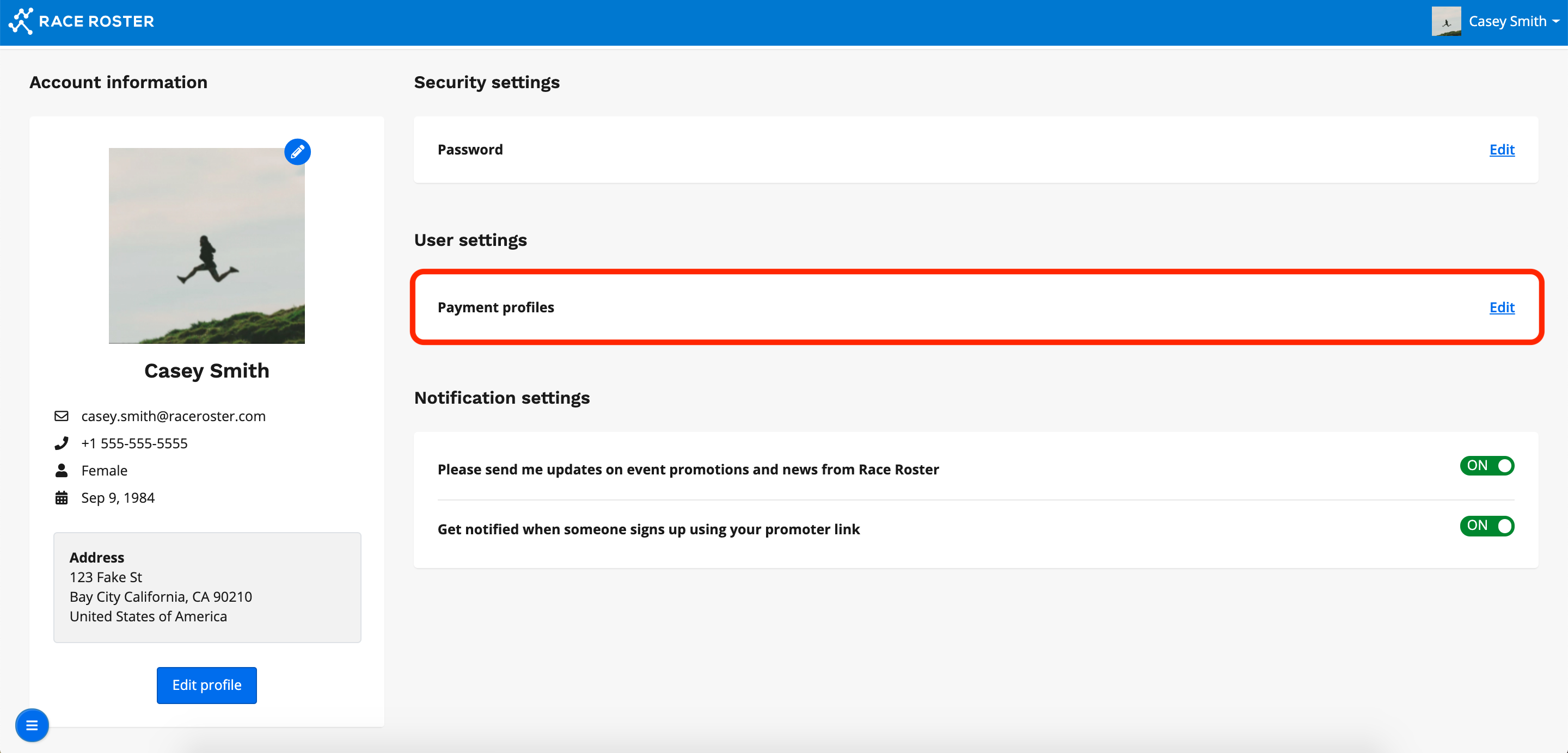 3. Scroll down and click Edit in the Payment profiles section under User settings.