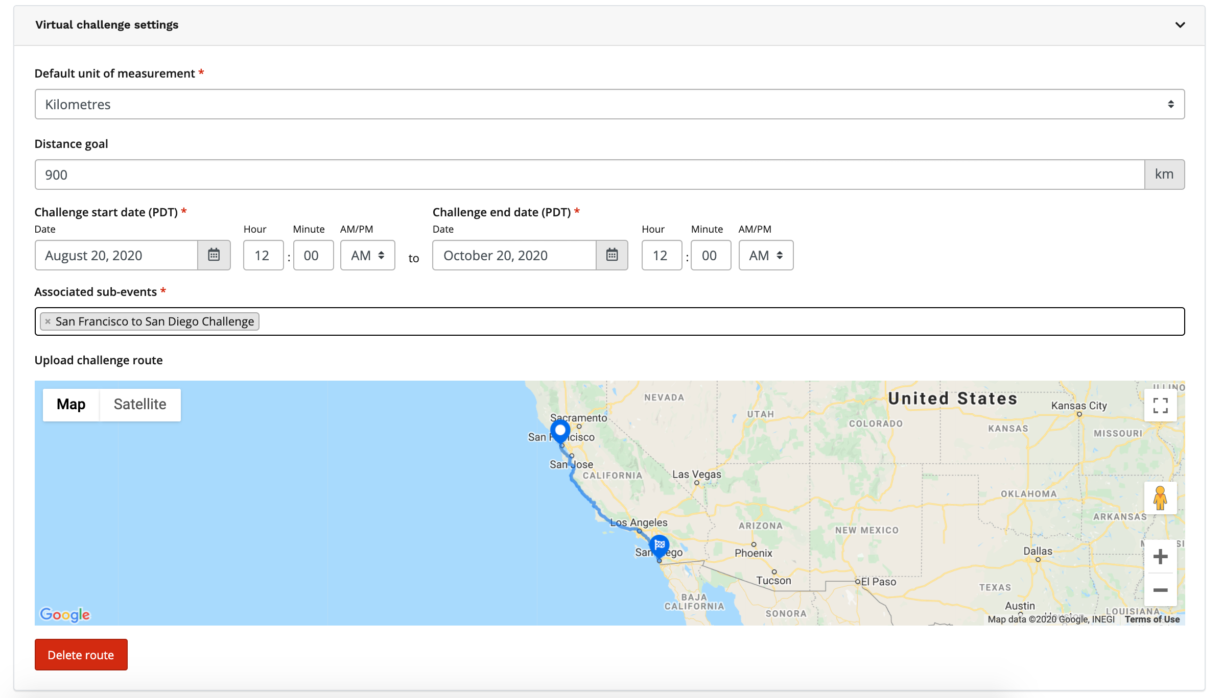- Distance goal: enter in the goal of what is needed to complete the challenge.