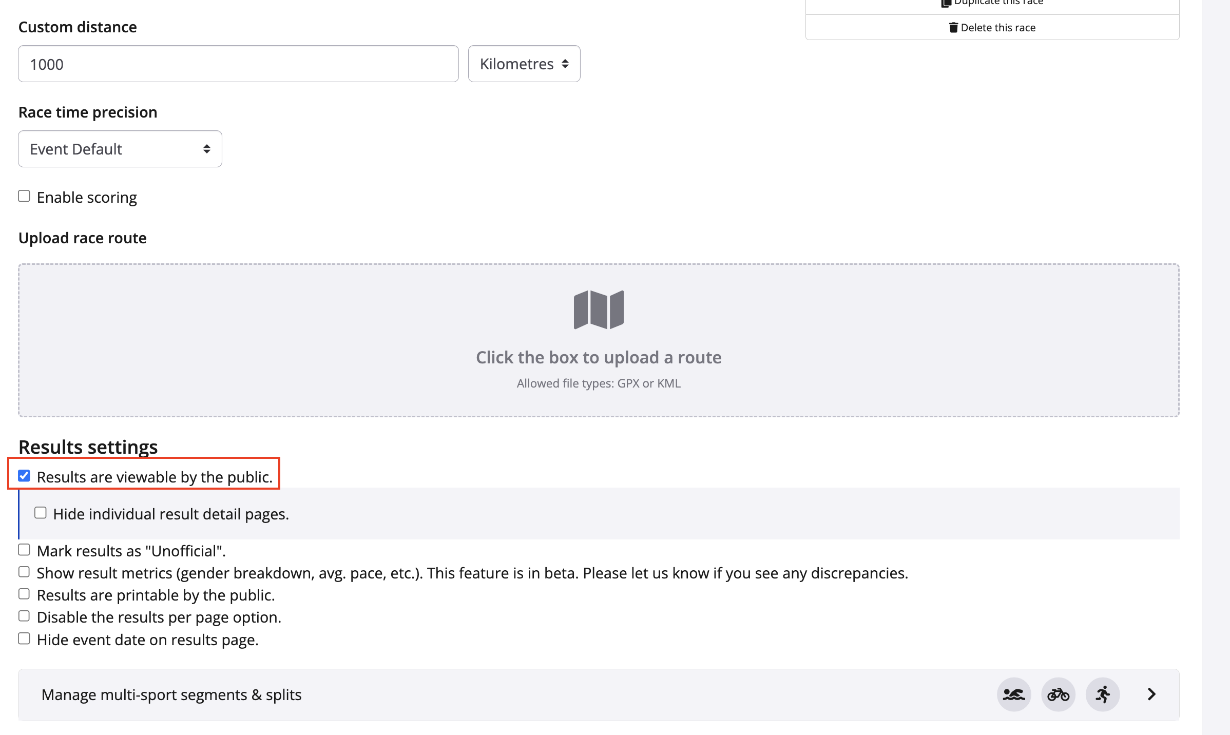8. After the import is complete, enable the Results are viewable by the public setting to allow the public to view the results.