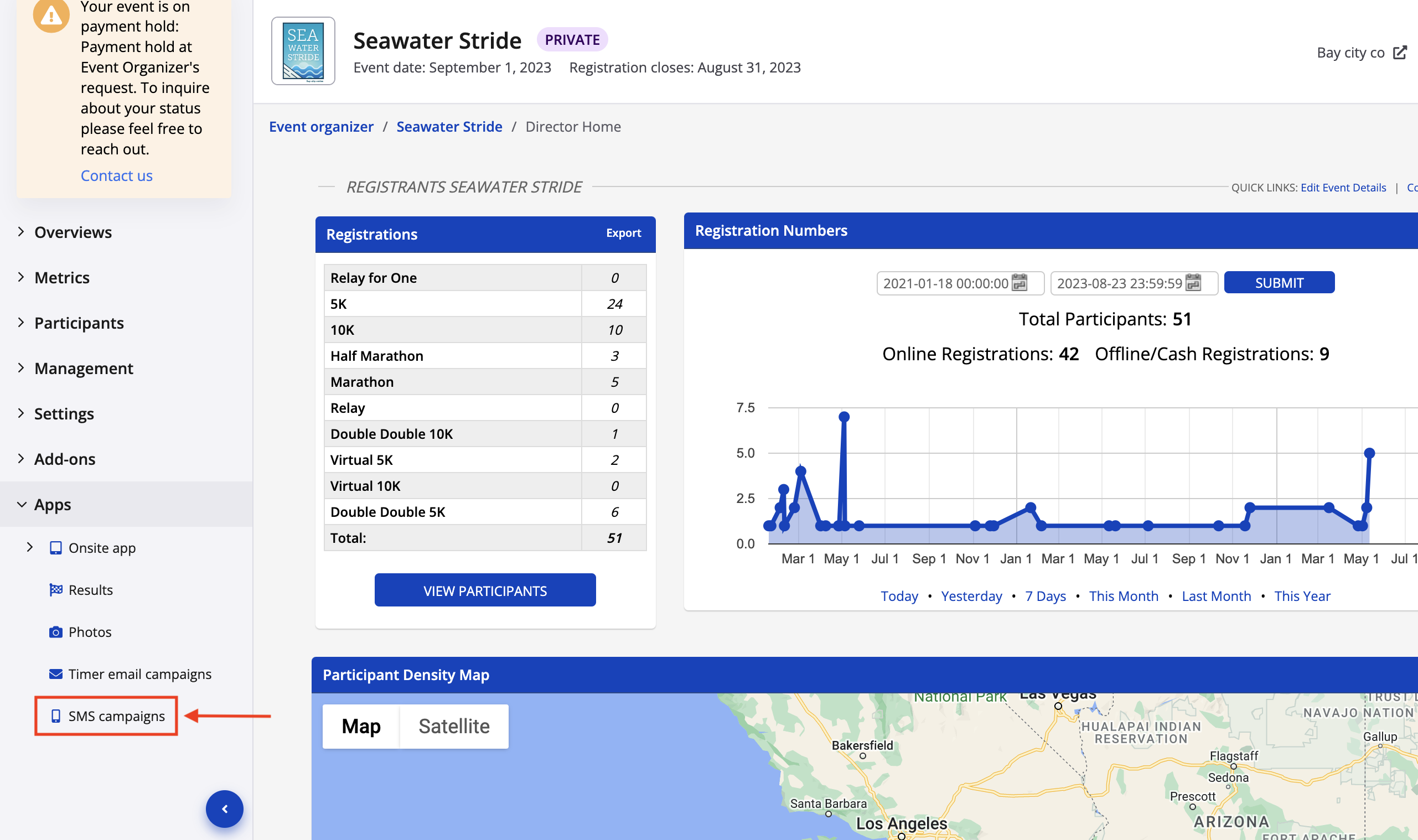1. From your event dashboard, click on Apps -> SMS Campaigns from the lefthand side menu.
