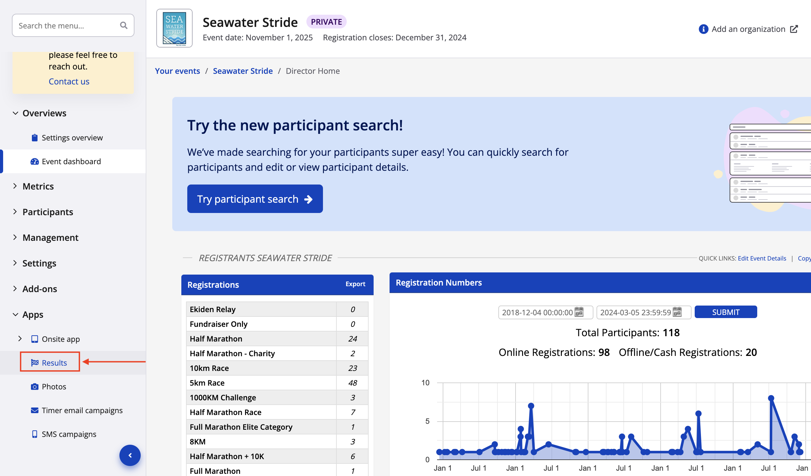 1. From your event dashboard, click on Add-Ons -> Results from the lefthand side menu.