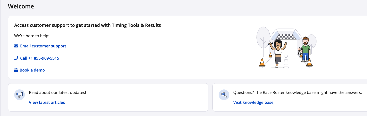 If you are not an existing Timer you land on our Timing Tools welcome page. From here you can book a demo with our friendly team to learn about Race Roster's Timing Tools and Results.