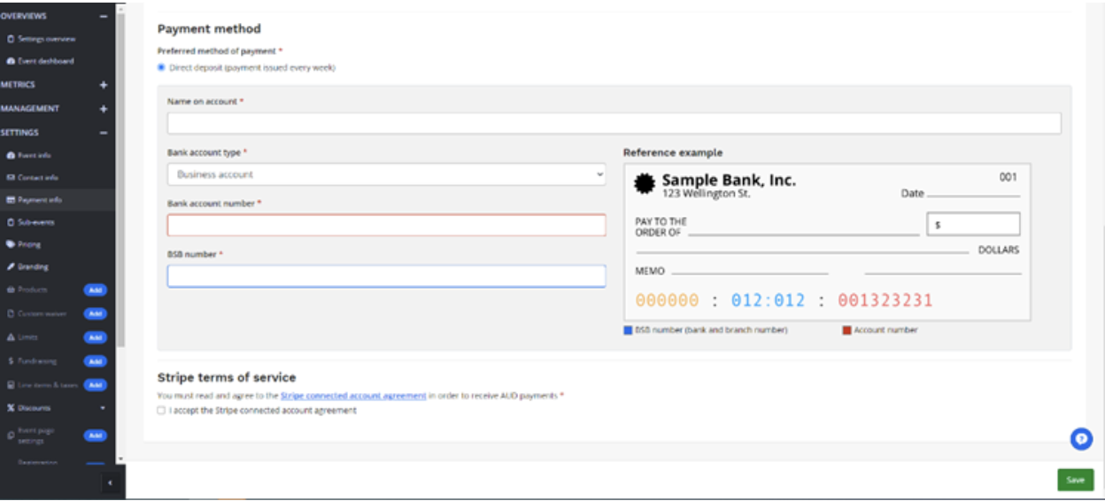 Note for fundraising coordinators: the bank details only need to be set up once and they are attached to your user profile, so they can be used for other events if you desire.
