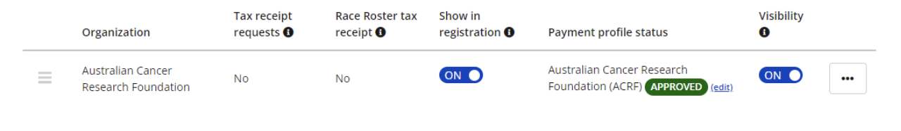 Here you will find the fundraising organisations you have been granted access to. Now it’s time to set up a payment profile for this charity. - Click the 3 dots on the right and choose manage payment profile
