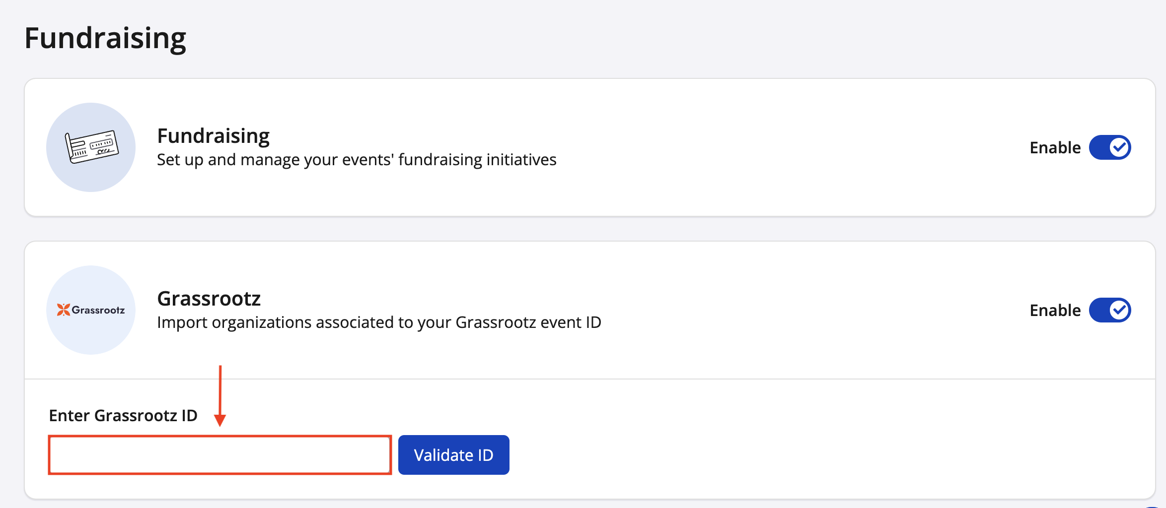 To learn how to enable the Grassrootz integration on your event follow the steps below.
