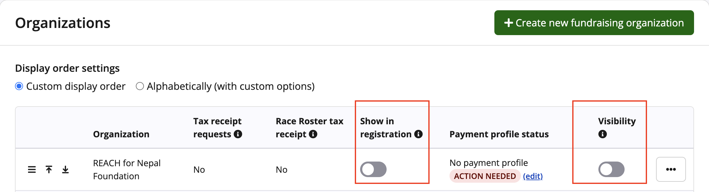 5. After importing your charity organizations from Grassrootz into Race Roster, the organization will need to complete the fundraising payment profile for the organization. Fundraising payment profiles must be completed before the charity can appear on the event within registration.