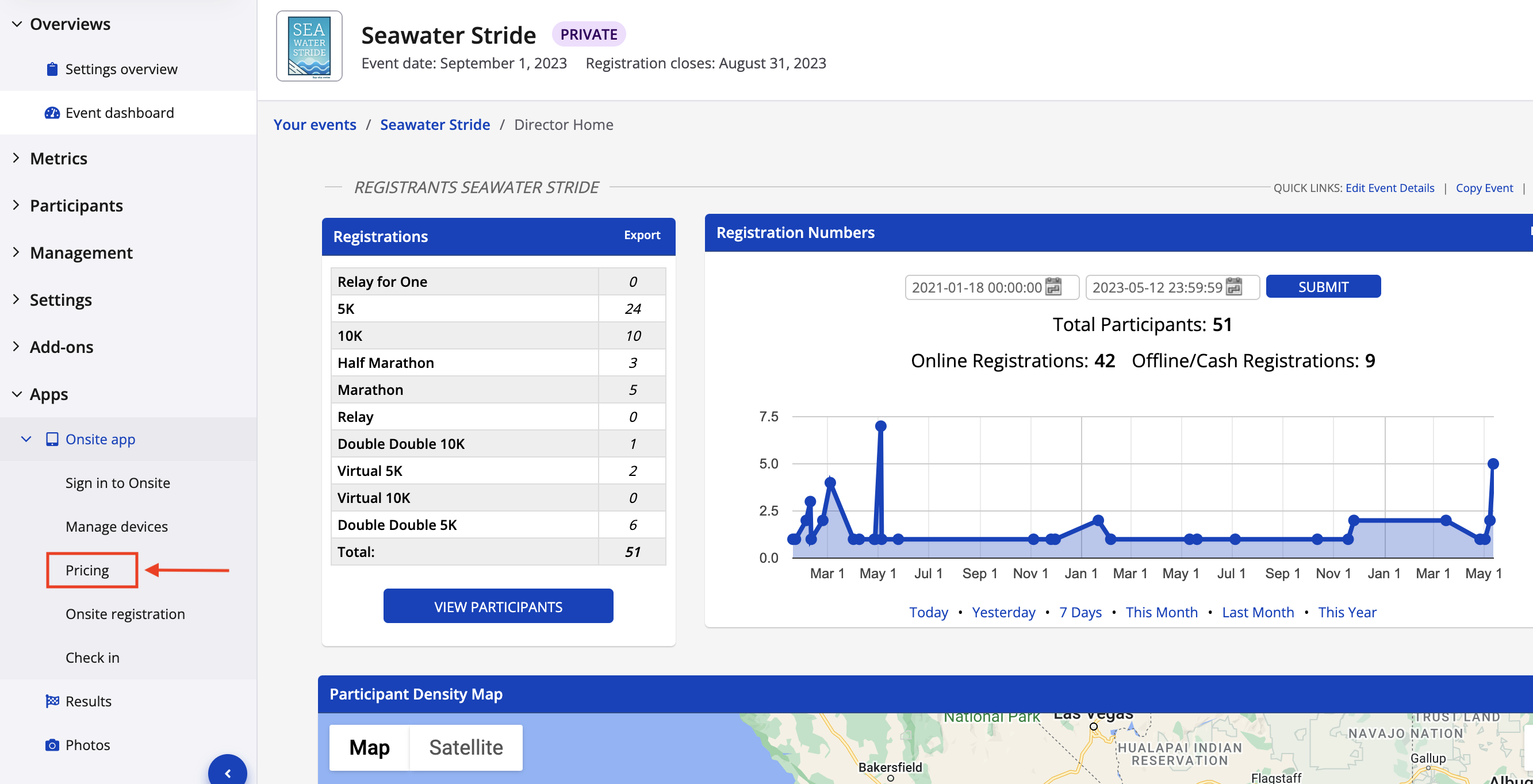 1. From your event dashboard, click on Apps > Onsite app > Pricing from the lefthand side menu.