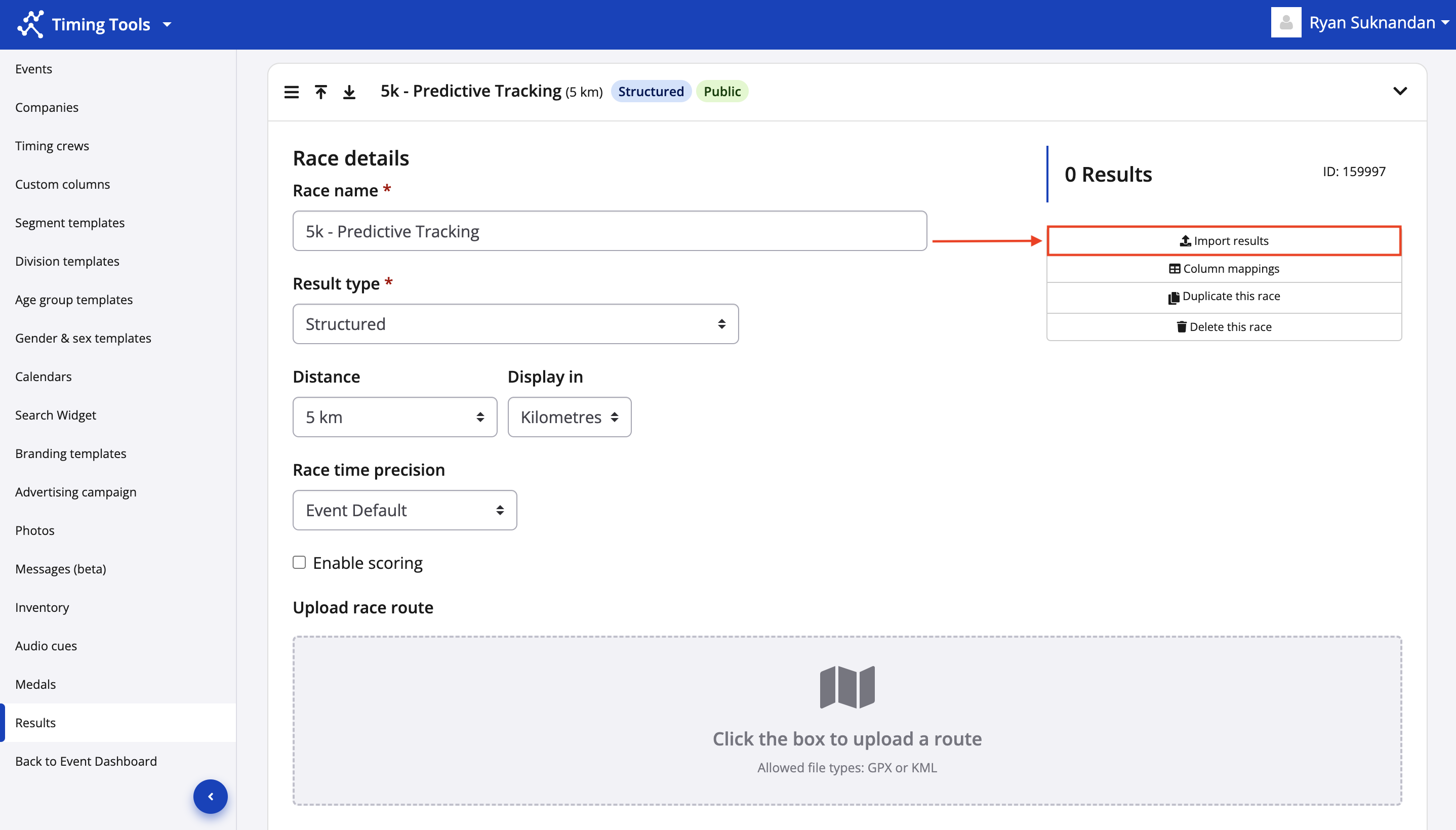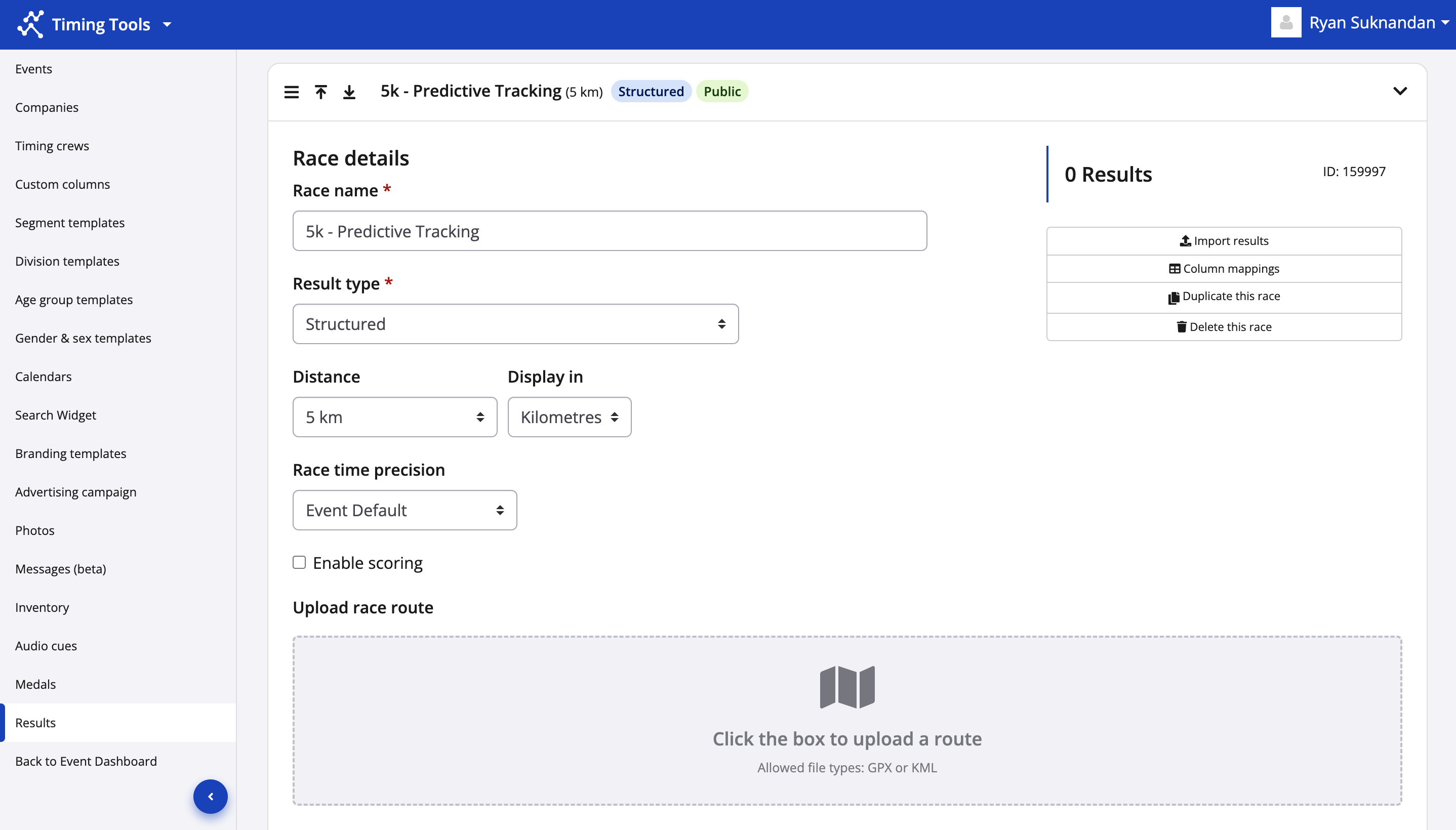 4. Uploading a race route is optional but strongly recommended to optimize your live predictive tracking display from the participant's results page. Uploading a race route will allow for spectators of a participant's race to view their predicted location along the course as updated times are uploaded. (GPX or KML file types allowed).