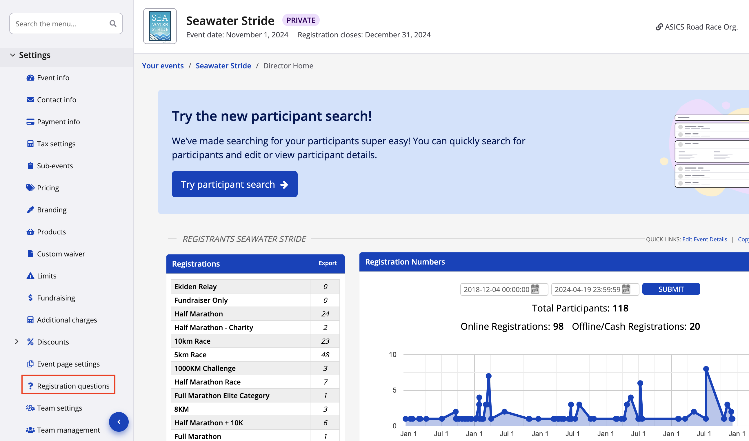 2. From your registration questions settings, create a new question titled "What is your estimated finishing time?". This question will be asked to your participants during registration. View our guide on how to create a custom registration question for more info on this.