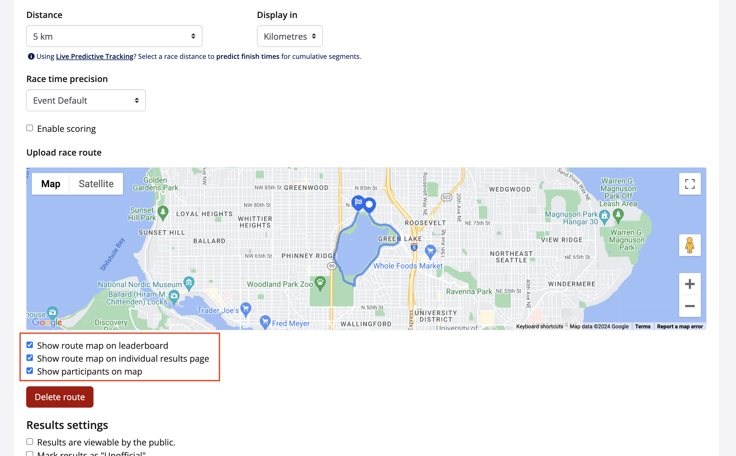4. From your results dashboard, scroll down to find the race that you will be setting up predictive tracking on and click to expand the race settings.