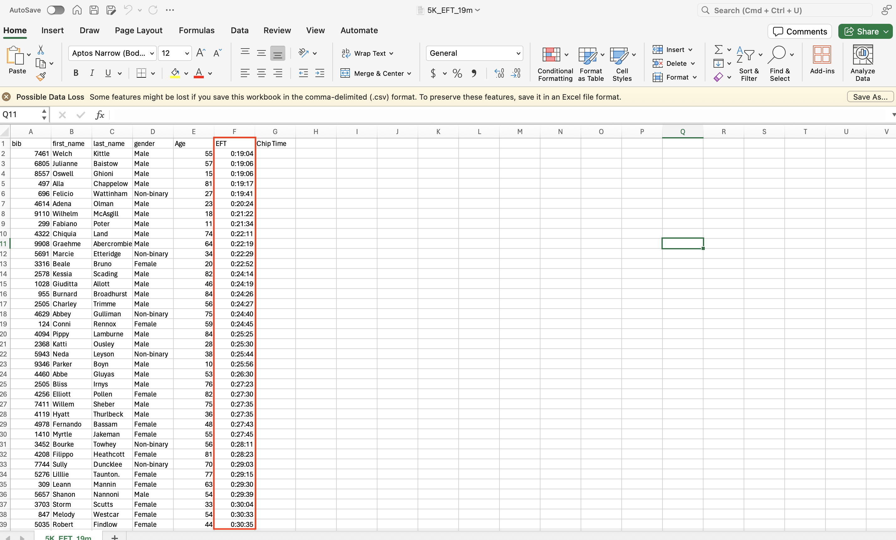 7. Upload the results for your race and ensure that there is a column containing estimated finishing time data within your results set. Please reference our guide on how to upload results to Race Roster for more information on this step.