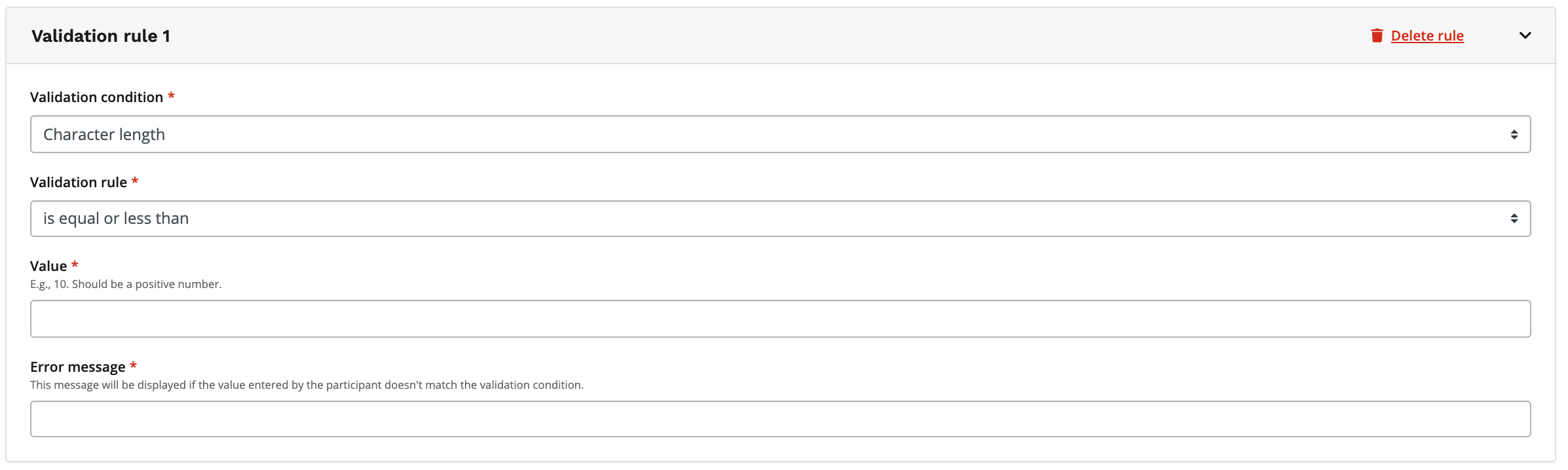 Validation questions allow you to ensure that a participant is responding to questions in the correct format. This is a feature that will allow you to keep your data clean.