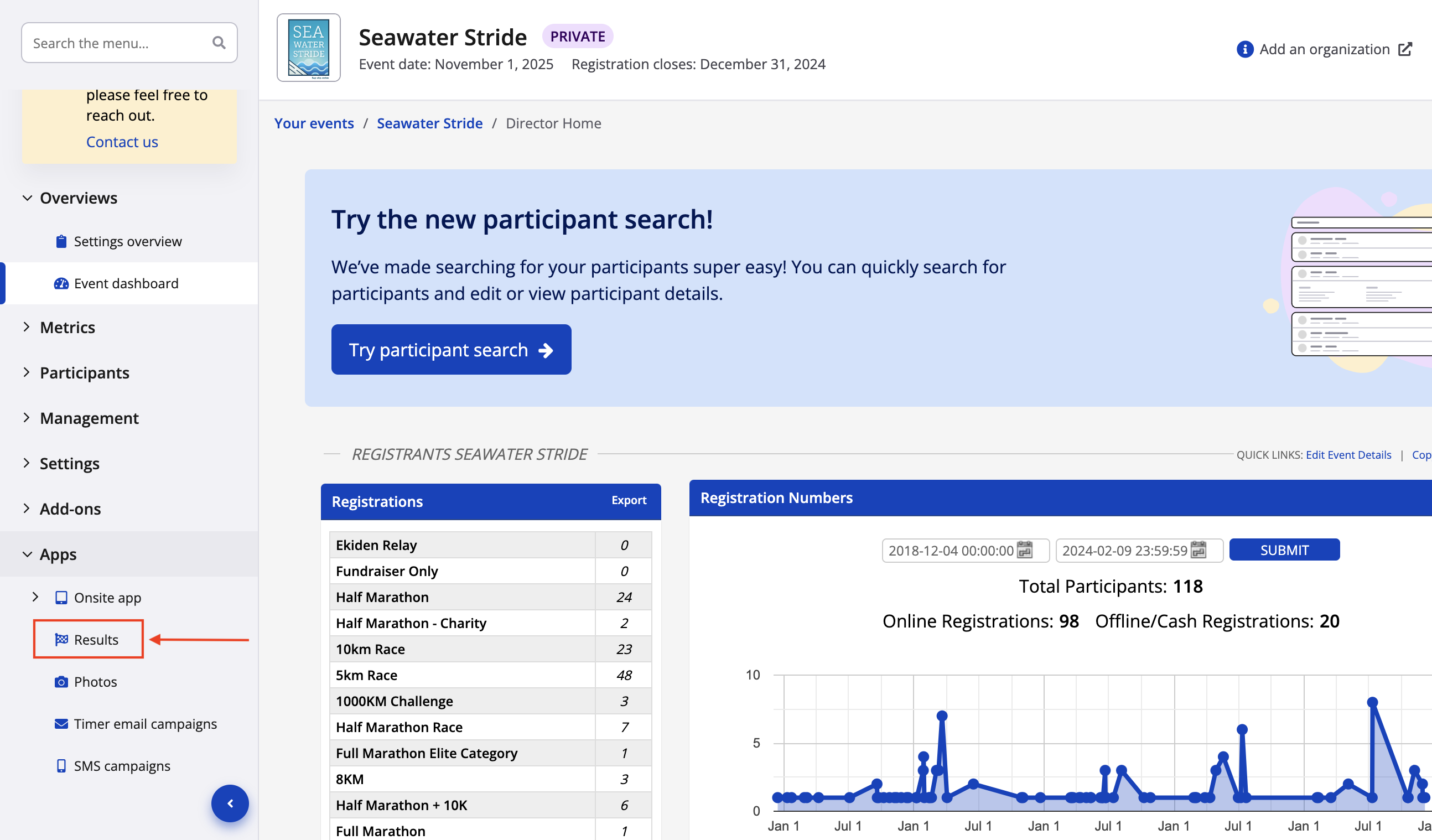 2. From your event dashboard, click on Apps -> Results from the lefthand side menu.