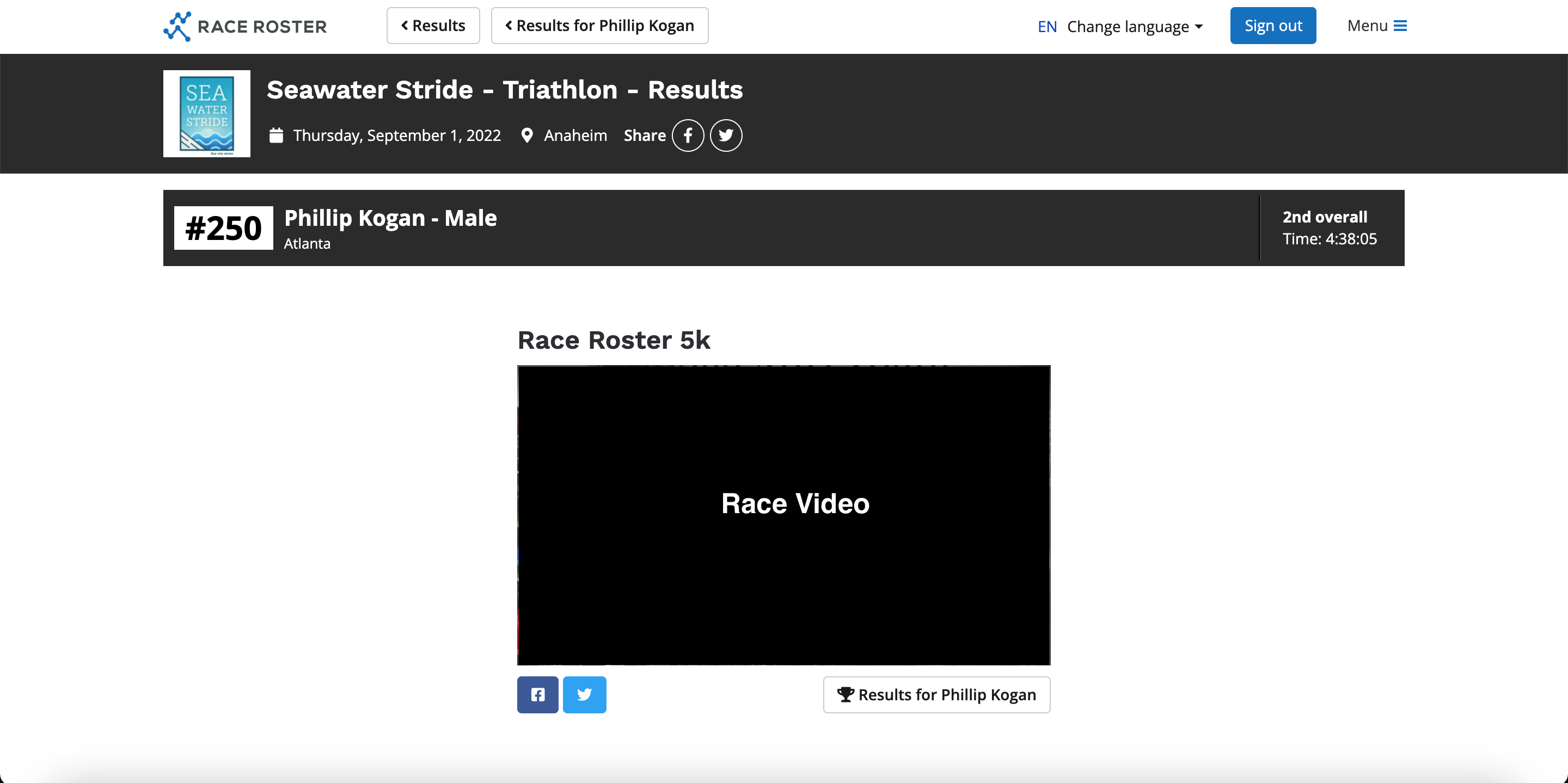 7. Click Add race and apply the video to a sub-event result (i.e. 5k, 10k, Half Marathon, Marathon, etc.)