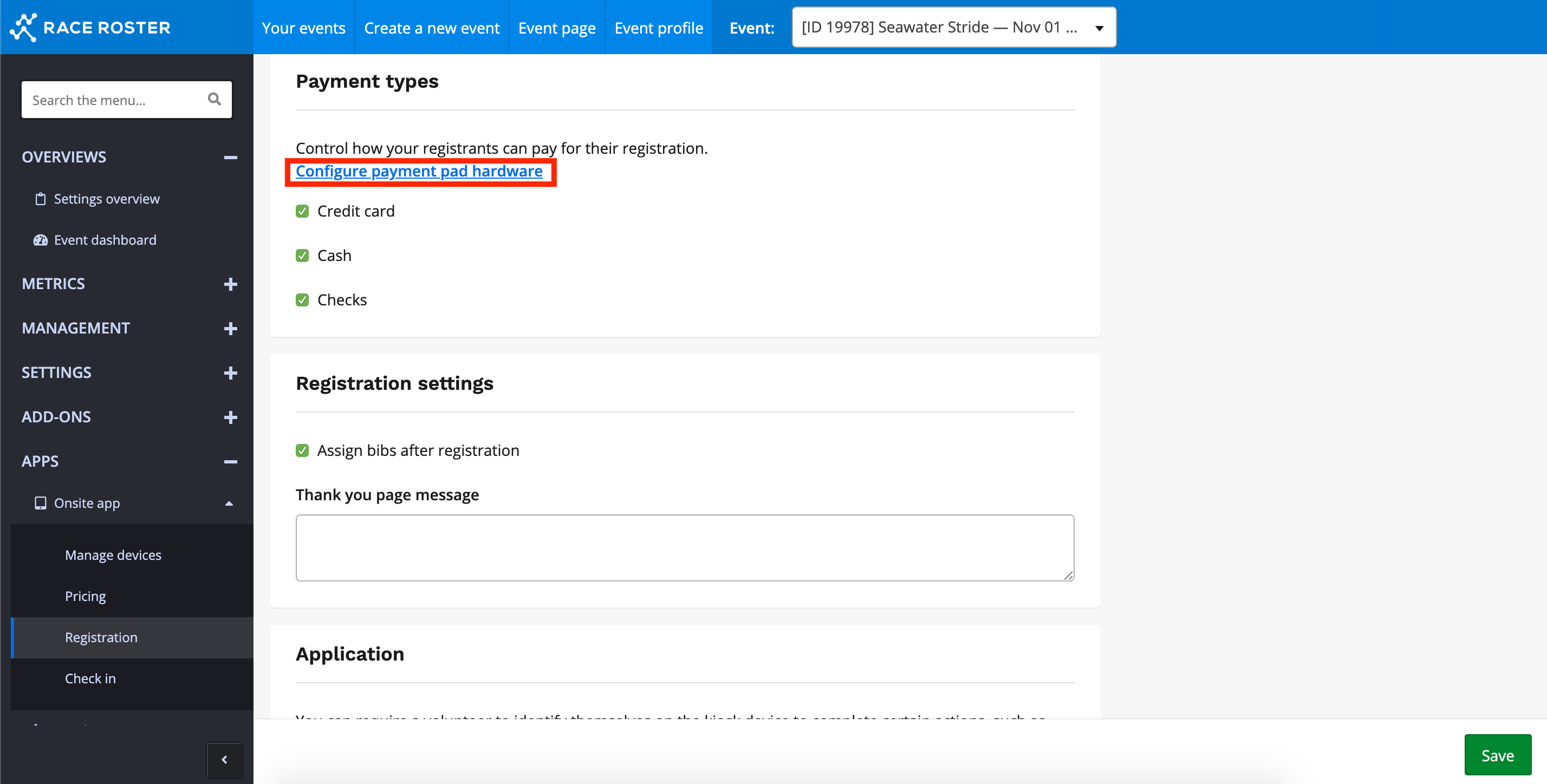 4. You will then be directed to the Onsite Registration page where you can make adjustments to your Onsite Registration settings.
