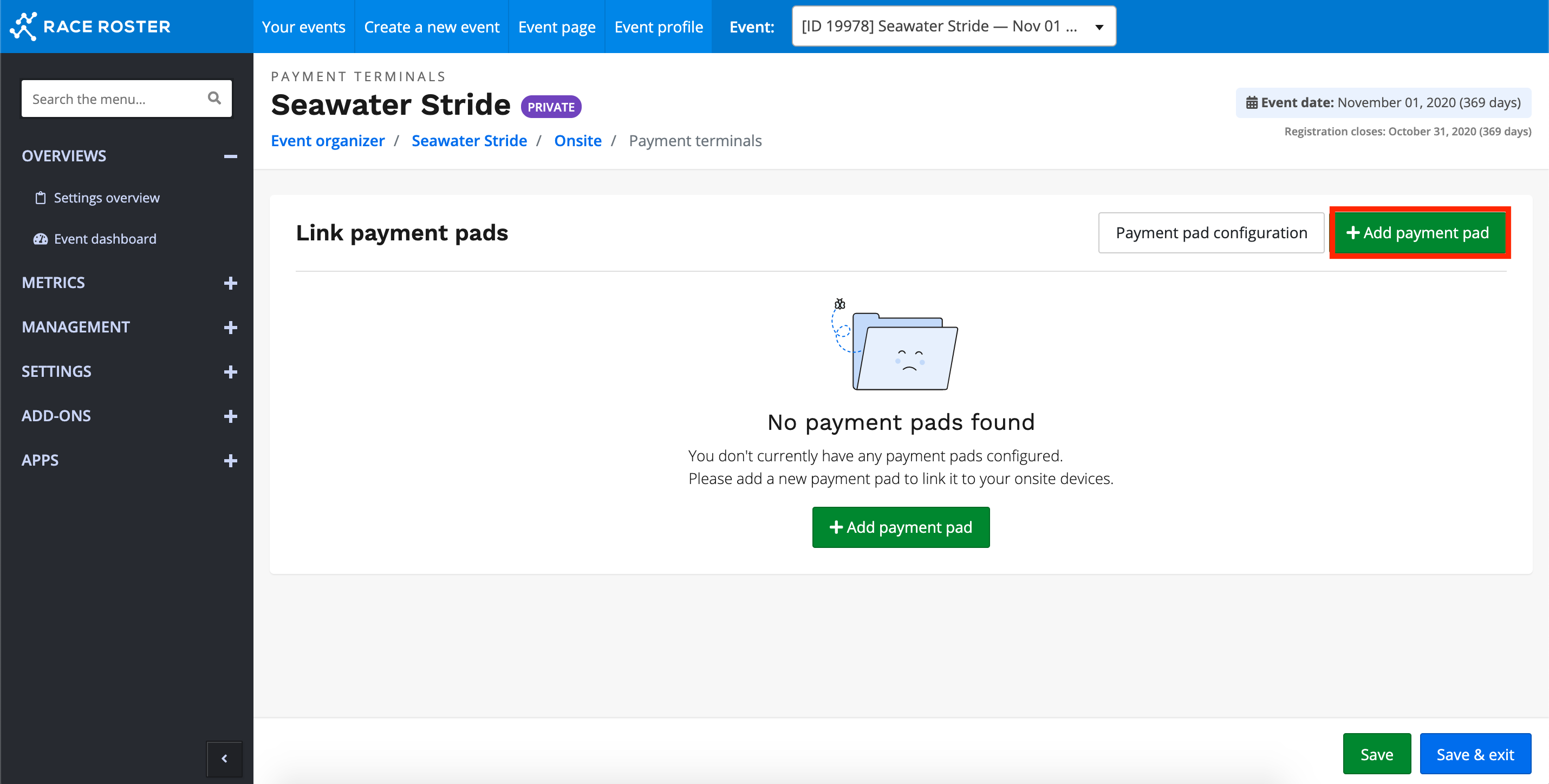 7. Click + Add Payment Pad to start the Payment Pad creation process.
