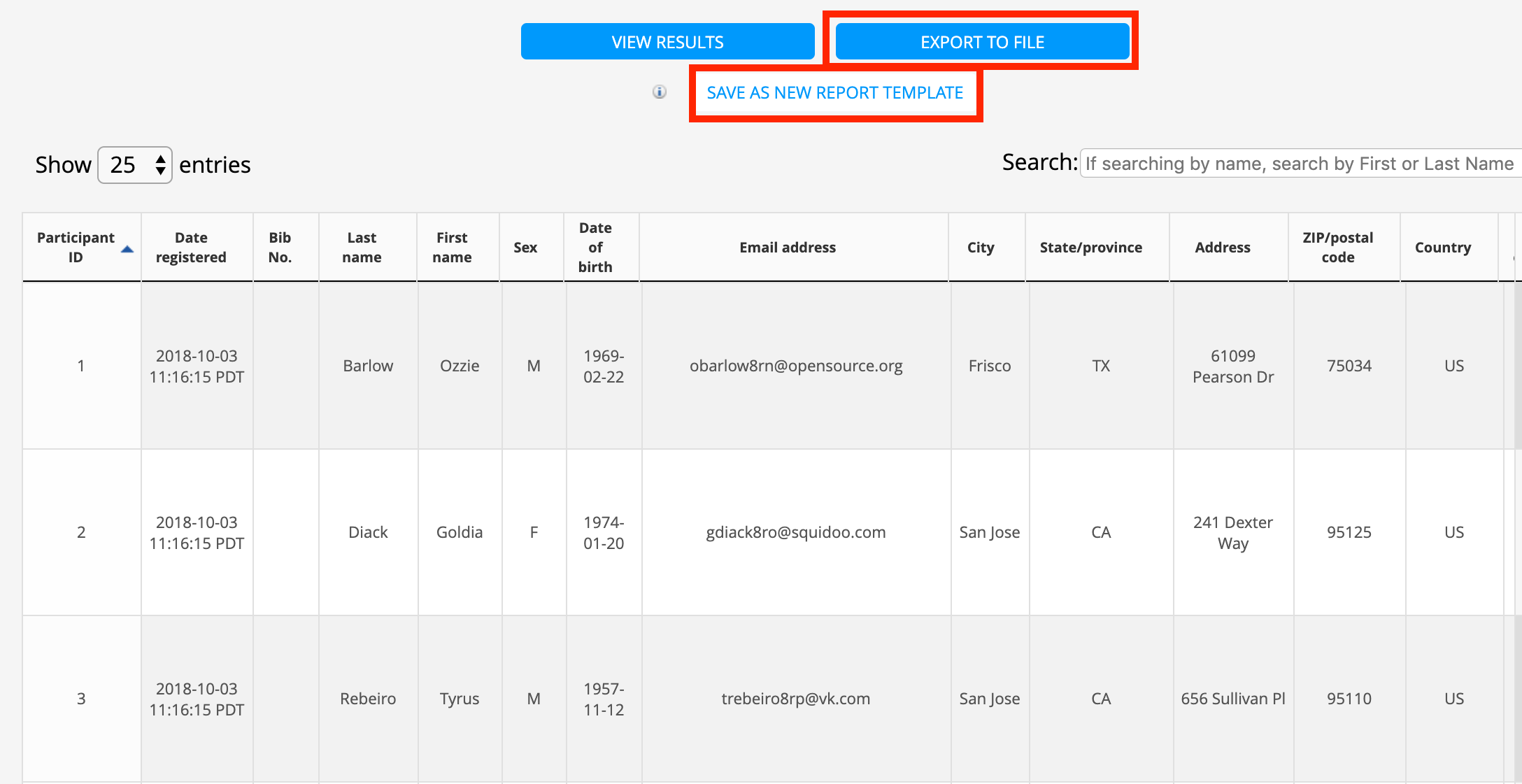 7. You can now Save as a New Report Template (helpful if you run this data all the time)or Export to File. You use this registration data for your marketing efforts and event planning.