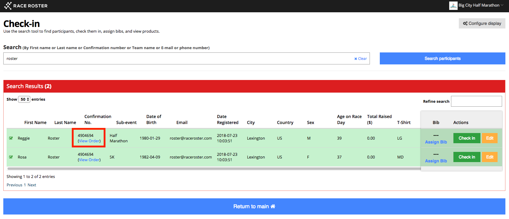 2. Once you find one of the individuals in the group, click View Order under the confirmation number