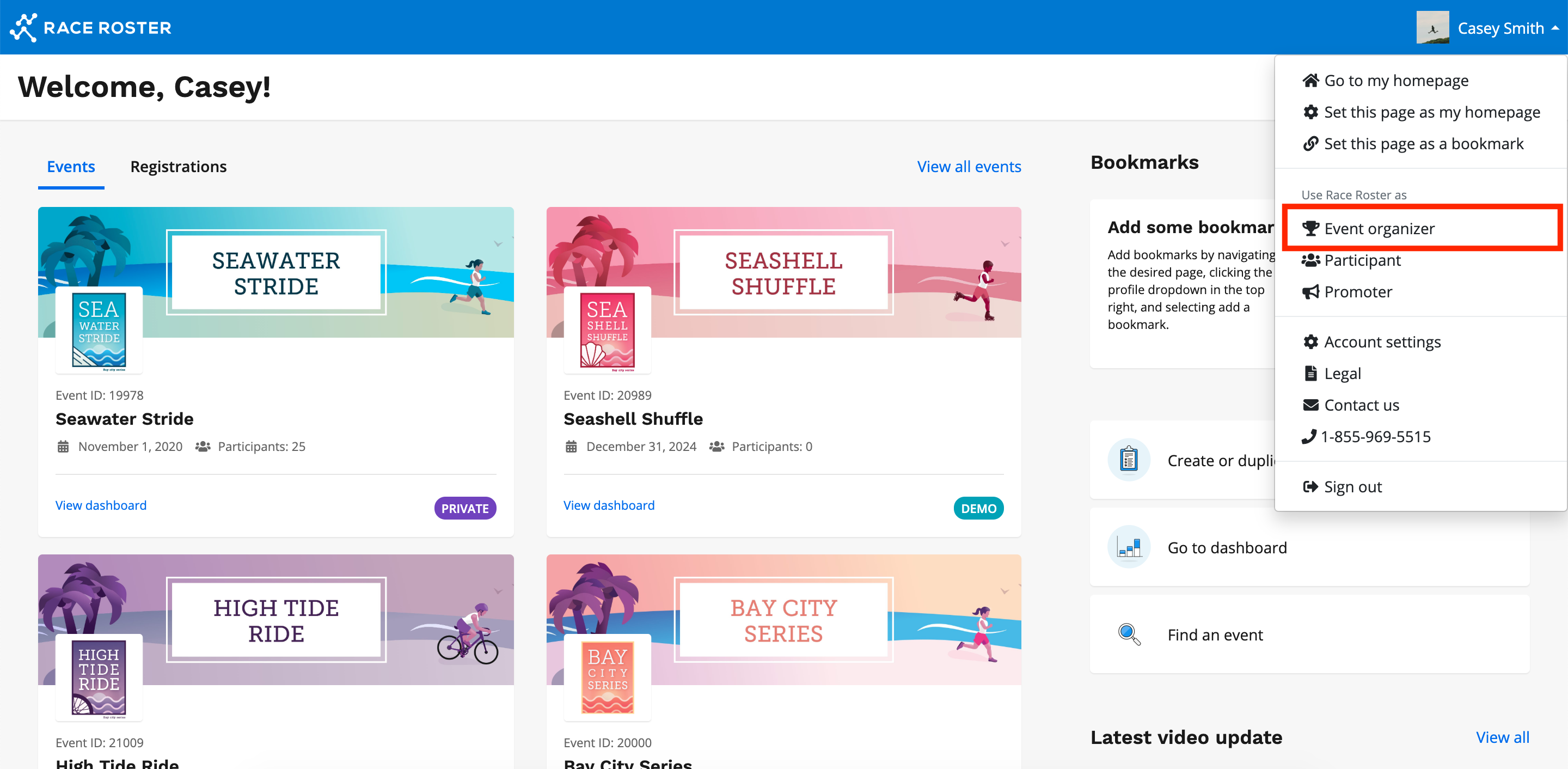 5. Select Event Organizer, to go to your most recent event.