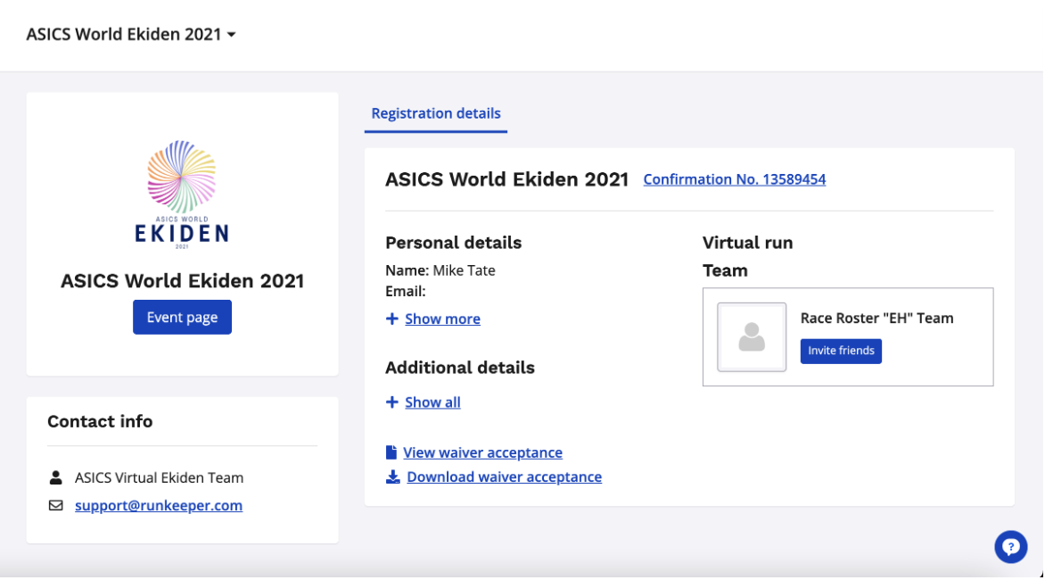 - An account hub to stay connected with each event that you're signed up for on Race Roster